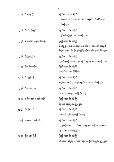 နေပြည်တော်စည်ပင်သာယာရေးကော်မတီ ဒုတိယဥက္ကဋ္ဌ၊ ဒုတိယမြိုတော်ဝန် ပူးတွဲတာဝန်ပေးအပ်ခြင်း