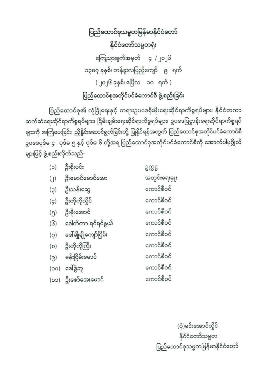ပြည်ထောင်စုအတိုင်ပင်ခံကောင်စီ ဖွဲ့စည်းခြင်း
