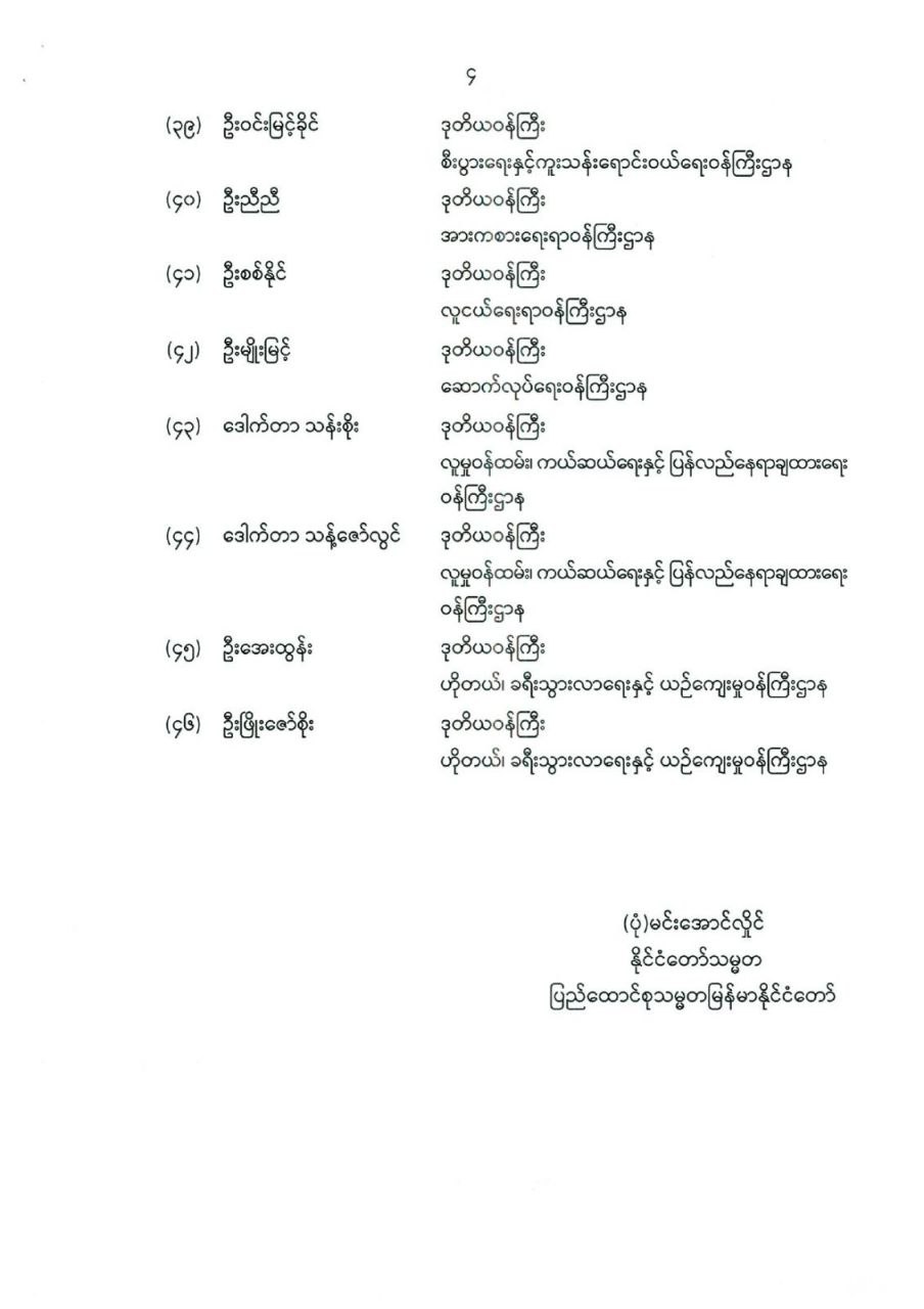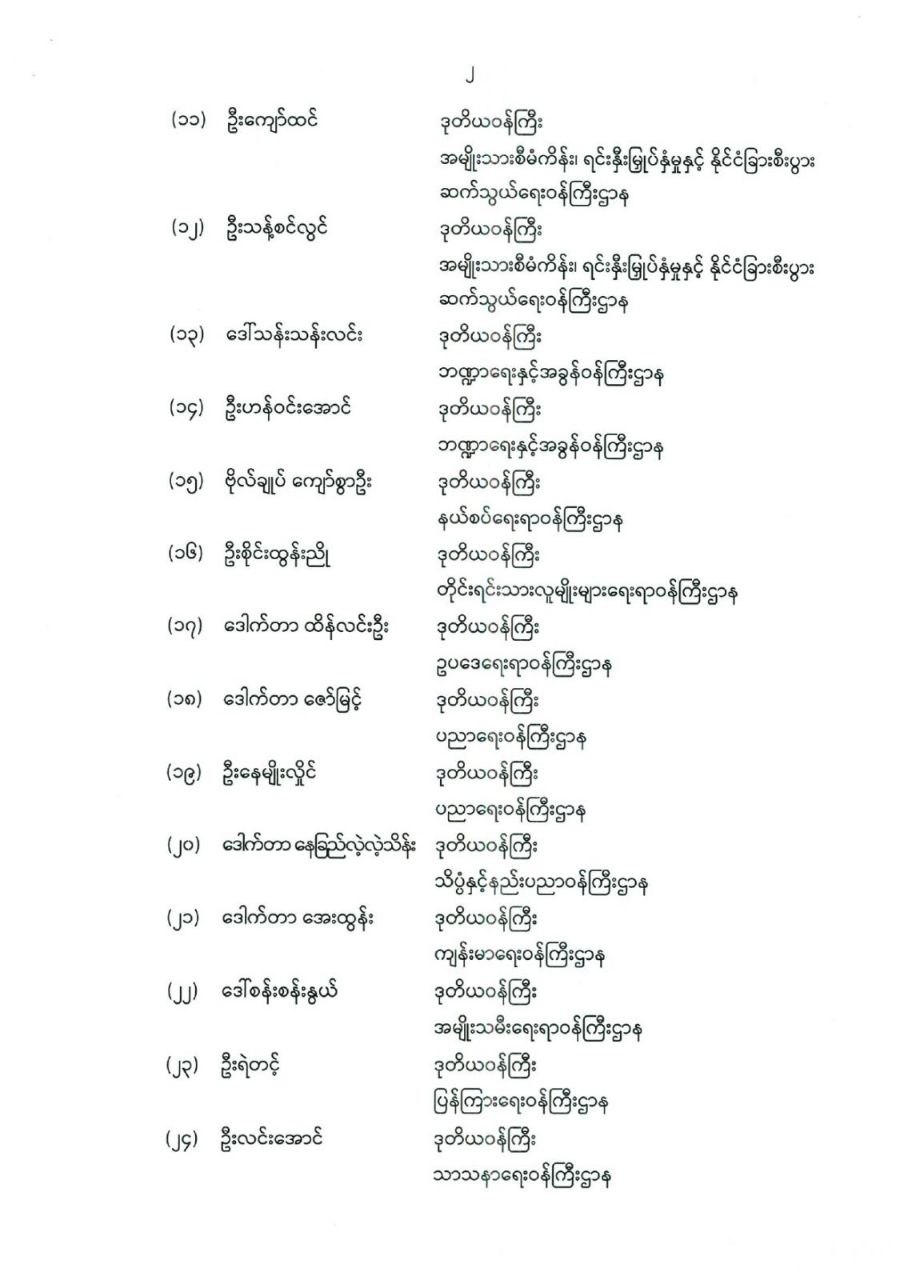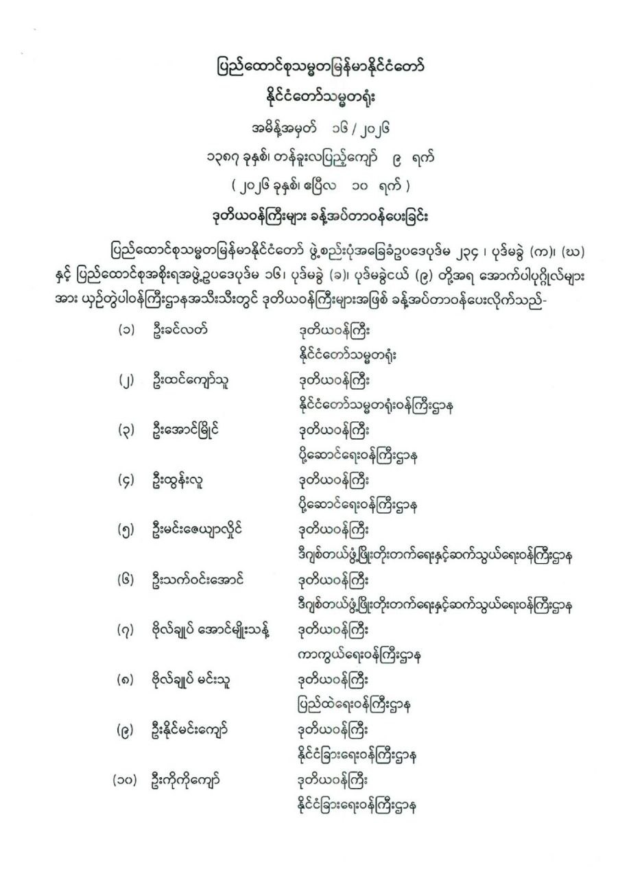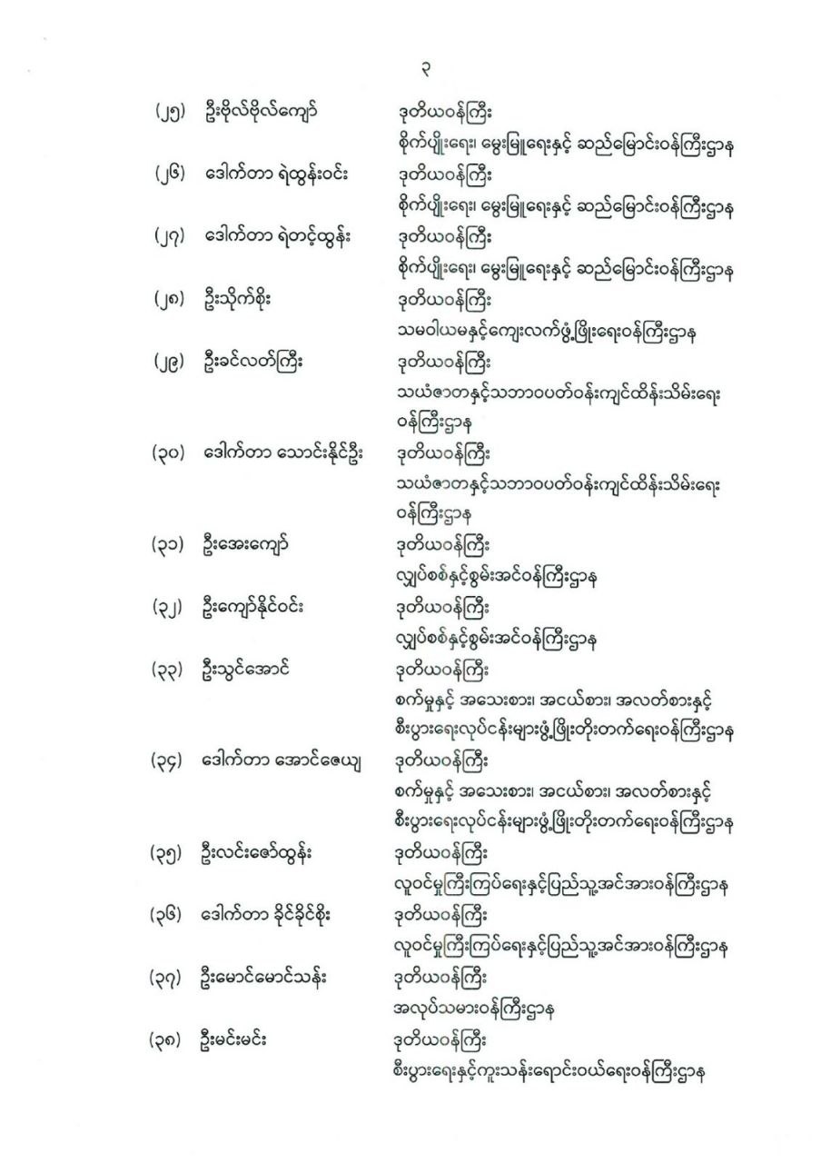 ဒုတိယဝန်ကြီးများ ခန့်အပ်တာဝန်ပေးခြင်း
