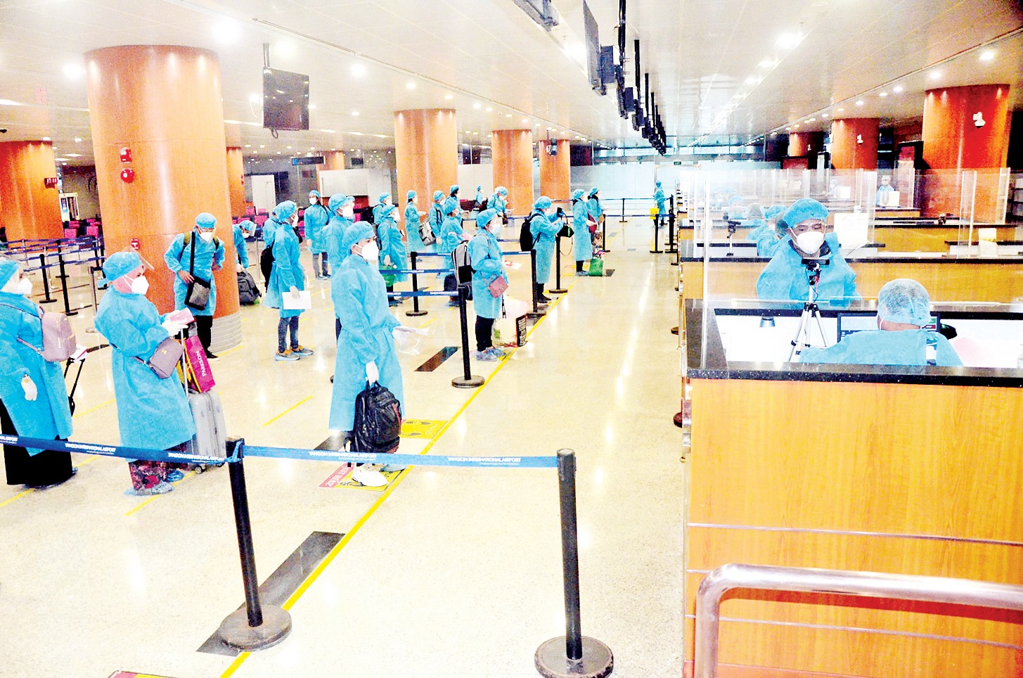 ၎င်းတို့ ရန်ကုန်အပြည်ပြည်ဆိုင်ရာလေဆိပ်သို့ ရောက်ရှိချိန်တွင် လူဝင်မှုကြီးကြပ်ရေး၊ ကျန်းမာရေး စစ်ဆေးရေး၊ သီးသန့်စီစဉ်ပေးသည့် နေရာ/သတ်မှတ် ဟိုတယ်များ၌ အသွားအလာကန့်သတ်မှု ခုနစ်ရက်နှင့်နေအိမ်တွင် အသွားအလာကန့်သတ်မှု ခုနစ်ရက် နေထိုင်စေ ရေးတို့ကို အလုပ်သမား၊ လူဝင်မှုကြီးကြပ်ရေးနှင့် ပြည်သူ့အင်အားဝန်ကြီးဌာန၊ ကျန်းမာရေးနှင့် အားကစားဝန်ကြီး ဌာနနှင့် ရန်ကုန်တိုင်းဒေသကြီး အစိုးရအဖွဲ့တို့က သက်ဆိုင်ရာ အခန်းကဏ္ဍအလိုက် တာဝန်ယူ ဆောင်ရွက်ပေးခဲ့သည်။
