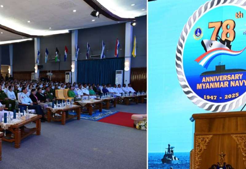 ပြည်ထောင်စုသမ္မတမြန်မာနိုင်ငံတော်၊ တပ်မတော်(ရေ)ဖွဲ့စည်းတည်ထောင်မှု(၇၈) နှစ်မြောက်နှစ်ပတ်လည်နေ့အခမ်းအနားကို ယနေ့နံနက်ပိုင်းတွင် သန်လျင်တပ်နယ်၊ ရေတပ်လေ့ကျင့်ရေးဌာနချုပ် သီရိမဟာဇေယျကျော်ထင်ခန်းမ၌ ကျင်းပပြုလုပ်ရာ နိုင်ငံတော်လုံခြုံရေးနှင့် အေးချမ်းသာယာရေးကော်မရှင်ဥက္ကဋ္ဌ တပ်မတော်ကာကွယ်ရေးဦးစီးချုပ် ဗိုလ်ချုပ်မှူးကြီး မင်းအောင်လှိုင် တက်ရောက်ချီးမြှင့်သည်။
