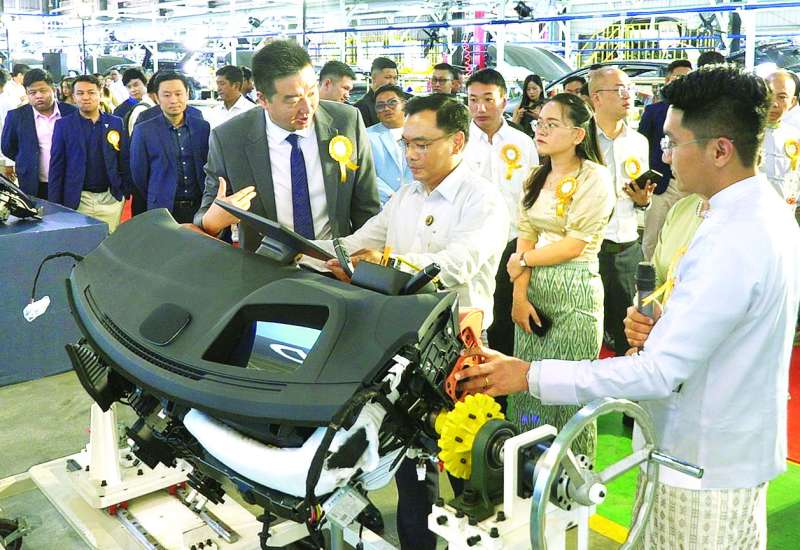 လျှပ်စစ်သုံးယာဉ်နှင့် ဆက်စပ်ပစ္စည်းများ သုတေသနဖွံ့ဖြိုးရေးနှင့် နည်းပညာပြန့်ပွားရေးလုပ်ငန်းကော်မတီဥက္ကဋ္ဌ သိပ္ပံနှင့်နည်းပညာဝန်ကြီးဌာန ဒုတိယဝန်ကြီး ဒေါက်တာအောင်ဇေယျသည် ယနေ့နံနက်ပိုင်းတွင် ရန်ကုန်တိုင်းဒေသကြီး ရွှေပြည်သာမြို့နယ် သာဓုကန်စက်မှုဇုန်ရှိ အားသစ်မာန် စွမ်းအားသစ်ကုမ္ပဏီလီမိတက်၏ လျှပ်စစ်သုံးယာဉ် (Electric Vehicle ၊ EV) များကို Semi Knocked Down (SKD) စနစ်ဖြင့် တပ်ဆင်ထုတ်လုပ်သည့် စက်ရုံဖွင့်ပွဲကို တက်ရောက်သည်။