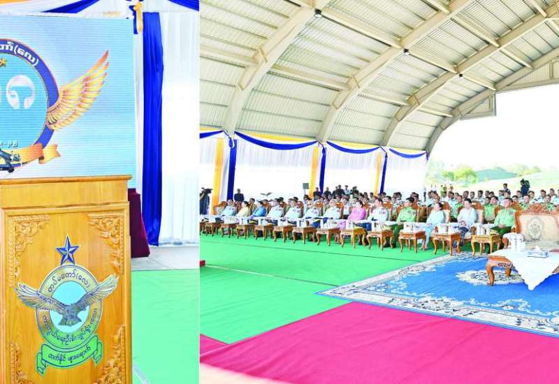 ပြည်ထောင်စုသမ္မတမြန်မာနိုင်ငံတော်၊ တပ်မတော် (လေ) ဖွဲ့စည်းတည်ထောင်မှု (၇၈) နှစ်မြောက် နှစ်ပတ်လည်နေ့ အခမ်းအနားကို ယနေ့နံနက်ပိုင်းတွင် နေပြည်တော်လေတပ်စခန်းဌာနချုပ်၌ ကျင်းပပြုလုပ်ရာ နိုင်ငံတော်လုံခြုံရေးနှင့် အေးချမ်းသာယာရေးကော်မရှင်ဥက္ကဋ္ဌ တပ်မတော်ကာကွယ်ရေးဦးစီးချုပ် ဗိုလ်ချုပ်မှူးကြီး မင်းအောင်လှိုင် တက်ရောက်ချီးမြှင့်သည်။