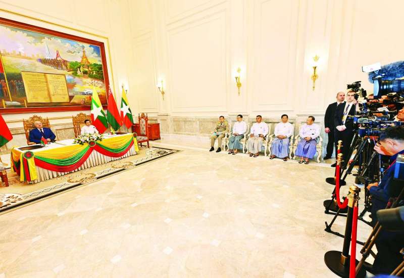 ပြည်ထောင်စုသမ္မတမြန်မာနိုင်ငံတော်ယာယီသမ္မတ နိုင်ငံတော်လုံခြုံရေးနှင့်အေးချမ်းသာယာရေးကော်မရှင်ဥက္ကဋ္ဌ ဗိုလ်ချုပ်မှူးကြီး မင်းအောင်လှိုင်နှင့် ဘယ်လာရုစ်သမ္မတနိုင်ငံသမ္မတ H.E. Mr. Aleksandr Lukashenko တို့သည် ယနေ့နံနက်ပိုင်းတွင် နိုင်ငံတော်သမ္မတအိမ်တော်၌ ကျင်းပသည့် နှစ်နိုင်ငံတွေ့ဆုံဆွေးနွေးပွဲနှင့် နားလည်မှုစာချွှန်လွှာလက်မှတ်ရေးထိုးပွဲအပြီးတွင် နှစ်နိုင်ငံပူးတွဲကြေညာချက်ကို ရှင်းလင်းပြောကြားခဲ့ကြသည်။