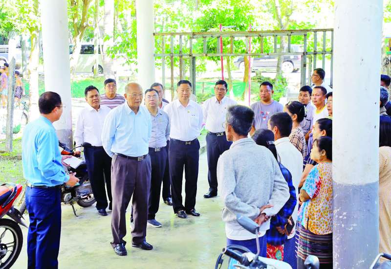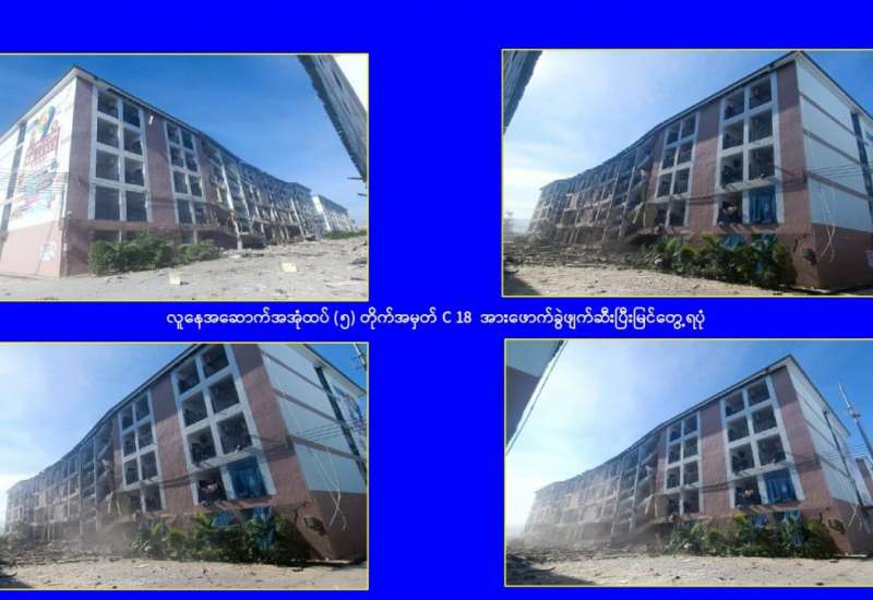 မြန်မာနိုင်ငံ အိုလံပစ်ကော်မတီဥက္ကဋ္ဌ အားကစားနှင့်လူငယ်ရေးရာဝန်ကြီးဌာနနှင့် ဟိုတယ်နှင့် ခရီးသွားလာရေးဝန်ကြီးဌာန ပြည်ထောင်စုဝန်ကြီး Jeng Phang နော်တောင်သည် ဒုတိယဝန်ကြီး ဦးထိန်လင်းနှင့် ဦးဇင်မင်းထက်၊ တာဝန်ရှိသူများနှင့်အတူ ယနေ့နံနက်ပိုင်းတွင် မန္တလေးငလျင်ဒဏ်ကြောင့် ထိခိုက်ပျက်စီးခဲ့သော အပြာရောင်အဆင့် သတ်မှတ်၍ ပြန်လည်ပြုပြင်ပြီး ဝန်ထမ်းအိမ်ရာအဆောက်အအုံများတွင် အားကစားနှင့်လူငယ်ရေးရာဝန်ကြီးဌာနမှ ဝန်ထမ်းများ ပြန်လည်ပြောင်းရွှေ့နေထိုင်မှုကို ကြည့်ရှုစစ်ဆေးသည်။