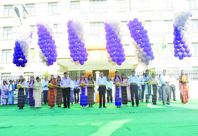 ဆေးဝါးတက္ကသိုလ် - ရန်ကုန်၏ အမျိုးသမီး (၁၁၀ဆံ့) အိပ်ဆောင် “ကံ့ကော်ဆောင်” ဖွင့်ပွဲကို ယနေ့ နံနက်ပိုင်းတွင်ကျင်းပရာ ကျန်းမာရေးဝန်ကြီးဌာန ပြည်ထောင်စုဝန်ကြီး ပါမောက္ခ ဒေါက်တာသက်ခိုင်ဝင်း၊ ရန်ကုန်တိုင်းဒေသကြီးဝန်ကြီးချုပ်နှင့် တိုင်းဒေသကြီးဝန်ကြီးများ၊ ကျန်းမာရေးဝန်ကြီးဌာနမှ ညွှန်ကြားရေးမှူးချုပ်နှင့် တာဝန်ရှိသူများ၊ ဆောက်လုပ်ရေးဝန်ကြီးဌာန၊ အဆောက်အဦဦးစီးဌာန၊ အဆောက်အဦအထူးအဖွဲ့ (၂) မှ တာဝန်ရှိသူများ၊ ဌာနအသီးသီးမှ ဖိတ်ကြားထားသော ဧည့်သည်တော်များနှင့် ကျောင်းသား ကျောင်းသူများ တက်ရောက်ကြသည်။