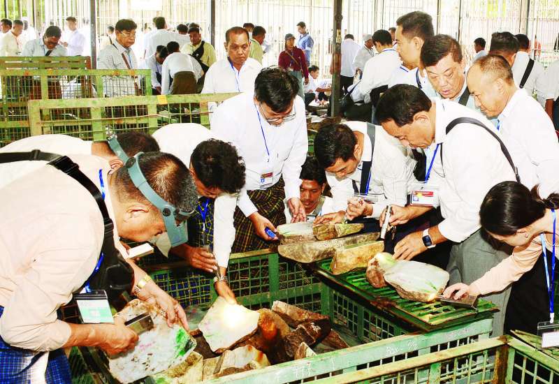 ၂၀၂၅ ခုနှစ် အကြိမ် (၆၀) မြောက် မြန်မာ့ကျောက်မျက် ရတနာပြပွဲ ပဉ္စမနေ့ကို ယနေ့နံနက်ပိုင်းတွင် နေပြည်တော်ရှိ မဏိရတနာကျောက်စိမ်းခန်းမ၌ ဆက်လက်ကျင်းပရာ နံနက်ပိုင်းမှ စတင်၍ ပြည်တွင်း၊ ပြည်ပရတနာ ကုန်သည်များသည် မဏိရတနာကျောက်စိမ်းခန်းမအတွင်းနှင့် ခန်းမအပြင်ဘက် သတ်မှတ်နေရာများအလိုက် ခင်းကျင်းပြသထားသည့် ကျောက်စိမ်းအတွဲများကို စိတ်ကြိုက်လေ့လာကြည့်ရှုကြသည်။