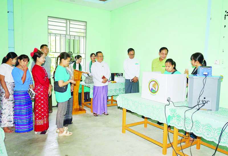 ၁။ ပြည်ထောင်စု ရွေးကောက်ပွဲကော်မရှင်အနေဖြင့် ဆန္ဒမဲပေးပိုင်ခွင့်ရှိသူများ မဲပေးခွင့်မဆုံးရှုံးစေရေးဥပဒေနှင့်အညီ ဆောင်ရွက်လျက်ရှိရာ မကြာမီတွင် ပြန်လည်ဖွင့်လှစ်တော့မည့် တက္ကသိုလ်၊ ဒီဂရီကောလိပ်၊ ကောလိပ်များတွင် တက်ရောက်ကြရမည့် မဲစာရင်းပါရှိသည့် သက်ဆိုင်ရာ မြို့နယ်ပြင်ပရောက် ကျောင်းသား၊ ကျောင်းသူများအနေဖြင့် အသက် ၁၈ နှစ် ပြည့်ပြီး ဥပဒေအရ ဆန္ဒမဲပေးပိုင်ခွင့်ရှိသူများဖြစ်ပါက မဲပေးခွင့်မဆုံးရှုံးစေရေးအတွက် သက်ဆိုင်ရာကျောင်းများသို့ မသွားရောက်မီ မိမိတို့၏ မဲစာရင်းပါရှိရာ ရပ်ကွက် သို့မဟုတ် ကျေးရွာအုပ်စု ကော်မရှင်အဖွဲ့ခွဲရုံးတွင် ၁၇ - ၁၁ - ၂၀၂၅ ရက်နေ့မှ ၂၁ - ၁၁ - ၂၀၂၅ ရက်နေ့အထိ နံနက် ၀၉၀၀ နာရီမှ ညနေ ၁၆၃၀ နာရီအတွင်း သက်ဆိုင်ရာ အထောက်အထားတို့ကို ပြသ၍ ကြိုတင်ဆန္ဒမဲပေးရန် ဆောင်ရွက်ခဲ့ပါသည်။