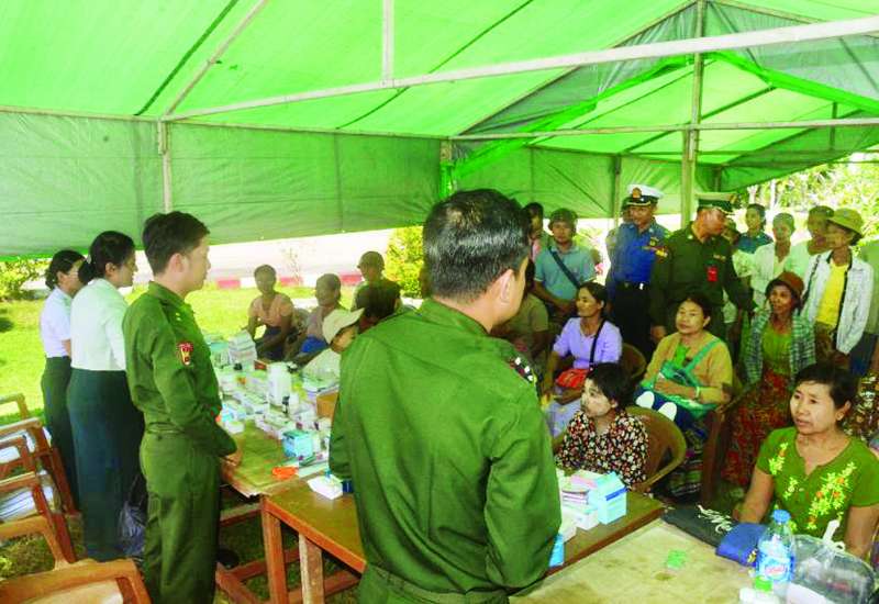 ရန်ကုန်တိုင်းဒေသကြီး ကိုကိုးကျွန်းမြို့နယ်နှင့် ဧရာဝတီတိုင်းဒေသကြီး၊ ဟိုင်းကြီးကျွန်းမြို့နယ်အတွင်းရှိ ကျေးရွာများနှင့်ပတ်ဝန်း ကျင်ကျေးရွာများမှ ဒေသခံပြည်သူများအား ကျန်းမာရေးစောင့်ရှောက်မှုလုပ်ငန်းများ ဆောင်ရွက်ပေးရန်အတွက် တပ်မတော်ပင်လယ်သွားဆေးရုံရေယာဉ် (သံလွင်) ဖြင့် ရောက်ရှိနေသည့် တပ်မတော်မှ ပါရဂူများ၊ ဆေးမှူးများနှင့် သူနာပြုများပါဝင်သော တပ်မတော်နယ်လှည့်အထူးကုဆေးအဖွဲ့သည် ယနေ့နံနက်ပိုင်းတွင် ဧရာဝတီတိုင်းဒေသကြီး ငပုတောမြို့နယ် ဟိုင်းကြီးကျွန်းမြို့နှင့် အနီးပတ်ဝန်းကျင်ကျေးရွာများရှိ ဒေသခံပြည်သူ ၄၆၅ ဦးအား နယ်မြေခံတပ်မတော်ဆေးရုံ၌ ကျန်းမာရေးစောင့်ရှောက်မှုလုပ်ငန်းများ ဆက်လက်ဆောင်ရွက်ပေးသည်။