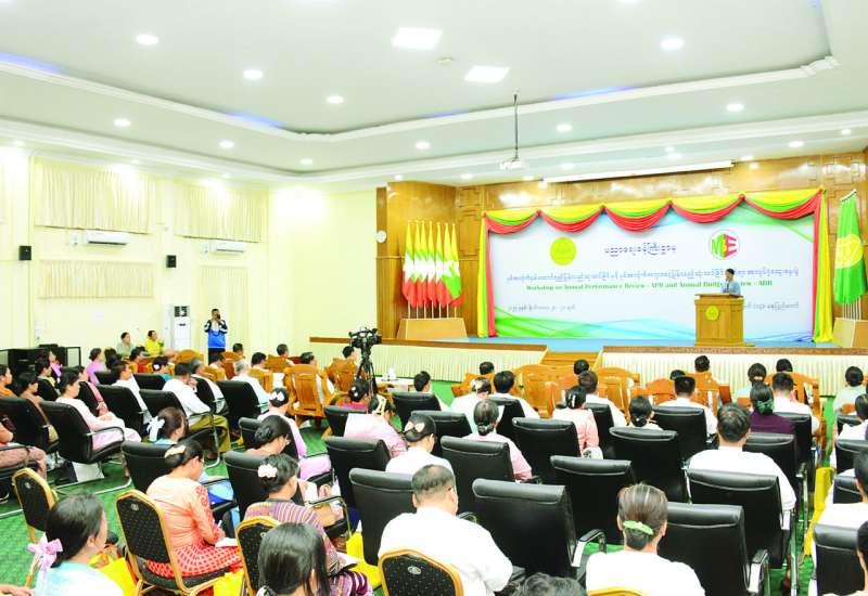 ပညာရေးဝန်ကြီးဌာန၏ နှစ်အလိုက်စွမ်းဆောင်ရည် ပြန်လည်သုံးသပ်ခြင်းနှင့် နှစ်အလိုက် ဘဏ္ဍာငွေပြန်လည်သုံးသပ်ခြင်း အလုပ်ရုံဆွေးနွေးပွဲကို ယမန်နေ့က နေပြည်တော်ရှိ ပညာရေးဝန်ကြီးဌာန အစည်းအဝေးခန်းမ၌ ကျင်းပရာ ပြည်ထောင်စုဝန်ကြီး ဒေါက်တာချောချောစိန်၊ ဒုတိယဝန်ကြီး ဒေါက်တာဇော်မြင့်နှင့် ဦးနေမျိုးလှိုင်၊ ညွှန်ကြားရေးမှူးချုပ်များ၊ ဒုတိယအမြဲတမ်းအတွင်းဝန်များ၊ ဒုတိယညွှန်ကြားရေးမှူးချုပ်များနှင့် တာဝန်ရှိသူများ တက်ရောက်ကြသည်။