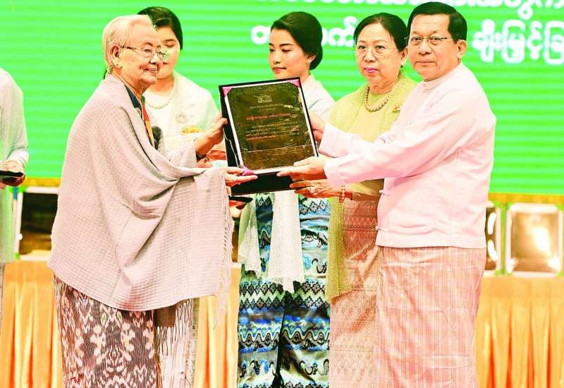 ၂၀၂၄ ခုနှစ်အတွက် အမျိုးသားစာပေတစ်သက်တာဆု၊ အမျိုးသားစာပေဆုနှင့် စာပေဗိမာန်စာမူဆု ဆုနှင်းသဘင်အခမ်းအနားကို ယနေ့နံနက်ပိုင်းတွင် နေပြည်တော်ရှိ အပြည်ပြည်ဆိုင်ရာကွန်ဗင်းရှင်းဗဟိုဌာန - ၁ ၌ ကျင်းပပြုလုပ်ရာ ပြည်ထောင်စုသမ္မတမြန်မာနိုင်ငံတော် ယာယီသမ္မတ နိုင်ငံတော်လုံခြုံရေးနှင့်အေးချမ်းသာယာရေးကော်မရှင်ဥက္ကဋ္ဌ ဗိုလ်ချုပ်မှူးကြီး မင်းအောင်လှိုင်နှင့် ဇနီး ဒေါ်ကြူကြူလှတို့ တက်ရောက်၍ စာပေဆုများပေးအပ်ချီးမြှင့်သည်။