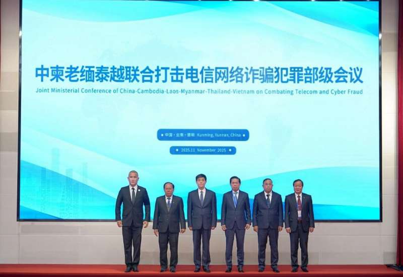 တရုတ်-မြန်မာ-ထိုင်း-ကမ္ဘောဒီးယား-လာအိုနှင့်ဗီယက်နမ်နိုင်ငံတို့အကြား ပထမအကြိမ် အွန်လိုင်းလိမ်လည်မှုပူးပေါင်းတိုက်ဖျက်ရေးဆိုင်ရာ ဝန်ကြီးအဆင့်အစည်းအဝေးကို ၁၄-၁၁-၂၀၂၅ ရက်နေ့၊ ၀၉:ဝ၀ နာရီမှ ၁၇:၀၀ နာရီအထိ တရုတ်ပြည်သူ့သမ္မတနိုင်ငံ၊ ကူမင်းမြို့ရှိ Hai Geng (ဟိုင်ဂင်) ဟိုတယ်၌ ကျင်းပပြုလုပ်ခဲ့သည်။