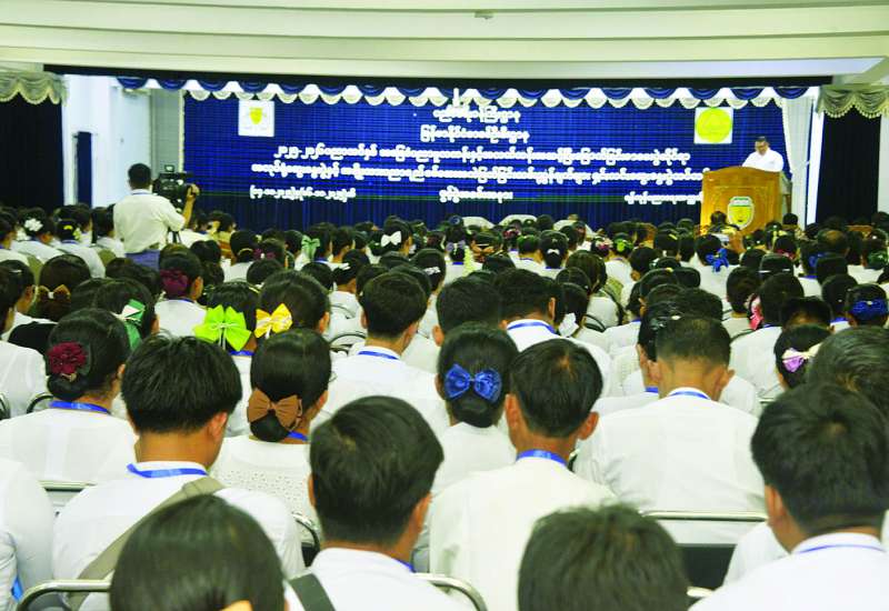 မြန်မာနိုင်ငံ စာစစ်ဦးစီးဌာနက ဦးစီးကျင်းပပြုလုပ်သည့် အခြေခံပညာမူလတန်းနှင့် အခြေခံပညာအလယ်တန်း ပြီးမြောက်ခြင်း စာမေးပွဲဆိုင်ရာ အလုပ်ရုံဆွေးနွေးပွဲနှင့် အမျိုးသားပညာရည် စစ်ဆေးအကဲဖြတ်ခြင်း၊ လမ်းညွှန်ချက်များ ရှင်းလင်းဆွေးနွေးပွဲကို ယမန်နေ့ နံနက်ပိုင်းက ရန်ကုန်ပညာရေးတက္ကသိုလ် Learning Hub ၌ ကျင်းပသည်။