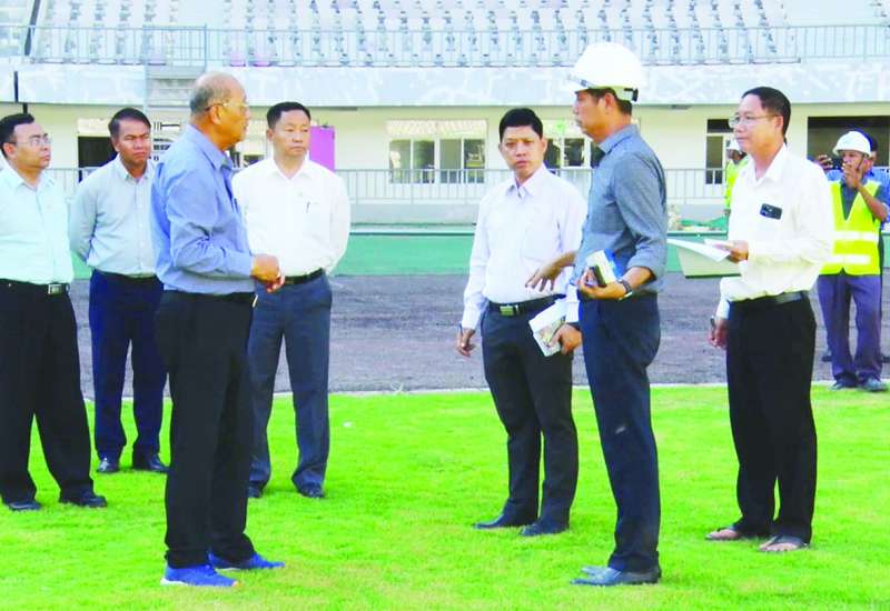 မြန်မာနိုင်ငံအိုလံပစ်ကော်မတီဥက္ကဋ္ဌ၊ အားကစားနှင့်လူငယ်ရေးရာဝန်ကြီးဌာနနှင့် ဟိုတယ်နှင့်ခရီးသွားလာရေးဝန်ကြီးဌာန ပြည်ထောင်စုဝန်ကြီး Jeng Phang နော်တောင်သည် ဒုတိယဝန်ကြီး ဦးထိန်လင်းနှင့် ဦးဇင်မင်းထက်၊ တာဝန်ရှိသူများနှင့်အတူ ယနေ့နံနက်ပိုင်းတွင် မန္တလေးငလျင်အပြီး ဝဏ္ဏသိဒ္ဓိအားကစားကွင်းရှိ အားကစားရုံ(A)နှင့်(B)တို့ ပြန်လည်ပြုပြင်ဆောင်ရွက်နေမှုကို ကြည့်ရှုစစ်ဆေးသည်။