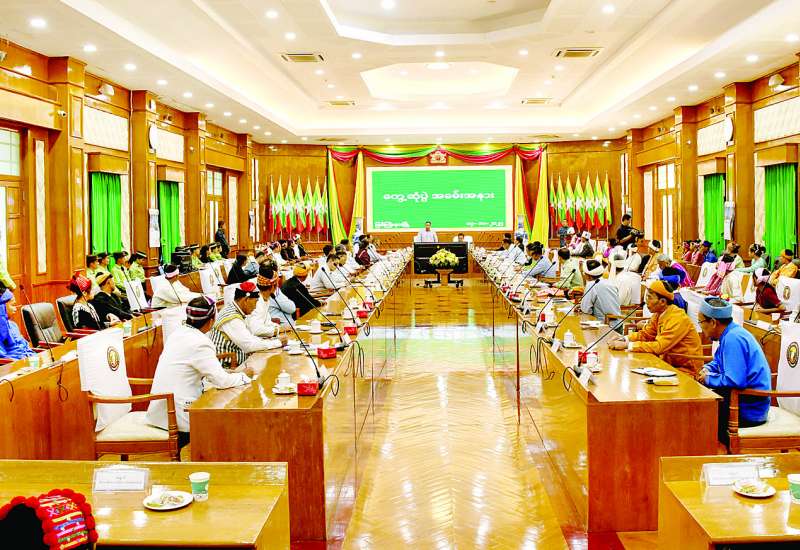 နိုင်ငံတော်လုံခြုံရေးနှင့်အေးချမ်းသာယာရေးကော်မရှင်အဖွဲ့ဝင် နယ်စပ်ရေးရာဝန်ကြီးဌာနနှင့် တိုင်းရင်းသားလူမျိုးများရေးရာဝန်ကြီးဌာန ပြည်ထောင်စုဝန်ကြီး ဒုတိယဗိုလ်ချုပ်ကြီး ရာပြည့်၊ အမျိုးသားကာကွယ်ရေးနှင့်လုံခြုံရေးကောင်စီ ဗဟိုအကြံပေးအဖွဲ့ဝင်များသည် ယနေ့မွန်းလွဲပိုင်းက မြစ်ကြီးနားမြို့ ကချင်ပြည်နယ်အစိုးရအဖွဲ့ရုံး မလိခခန်းမ၌ ပြည်နယ်အတွင်းရှိ တိုင်းရင်းသားစာပေနှင့် ယဉ်ကျေးမှုအသင်းအဖွဲ့များနှင့် တွေ့ဆုံကြသည်။