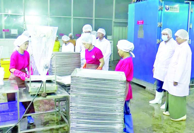 ပုဂ္ဂလိကကဏ္ဍ၏ ငါး၊ ပုစွန်နှင့် ရေထွက်ကုန်များ ပိုမိုတင်ပို့နိုင်ရေးနှင့် နိုင်ငံတကာစျေးကွက် စံချိန်စံညွှန်းမီ အရည်အသွေးမြင့်ထုတ်ကုန်များ တိုးတက်ထုတ်လုပ်နိုင်ရေးအတွက် စိုက်ပျိုးရေး၊ မွေးမြူရေးနှင့် ဆည်မြောင်းဝန်ကြီးဌာနက အားပေးကူညီဆောင်ရွက်ပေးလျက်ရှိရာ ယနေ့နံနက်ပိုင်းတွင် ဒုတိယဝန်ကြီး ဒေါက်တာအောင်ကြီးသည် ရန်ကုန်တိုင်းဒေသကြီး အင်းစိန်မြို့နယ် အနောက်ကြို့ကုန်းရှိ ရတနာသိင်္ဂီ စက်မှုလုပ်ငန်းကုမ္ပဏီလီမိတက်၏ ရေထွက်ပစ္စည်းပြုပြင်အေးခဲခြင်းနှင့် ရေခဲစက်ရုံ၌တန်ချိန် ၁၁ဝဝ ဆံ့ အအေးခန်းဖြင့် ပြင်ပအပ်ကုန်များ လက်ခံဆောင်ရွက်ပေးနေမှု၊ ရတနာသိင်္ဂီစက်မှု လုပ်ငန်းကုမ္ပဏီလီမိတက် (အအေးခန်းစက်ရုံ)မှ ရေချိုငါး၊ ရေငန်ငါးများအေးခဲပြုပြင်ပြီး China၊ Saudi၊ Kuwait၊ UAE နိုင်ငံများသို့ အဓိကတင်ပို့နေမှုနှင့် BAP စနစ်ဖြင့် ဆော်ဒီနိုင်ငံသို့ မွေးမြူရေးငါးများတင်ပို့နိုင်ရေး ဆောင်ရွက်နေမှုများကို ကြည့်ရှုစစ်ဆေးသည်။