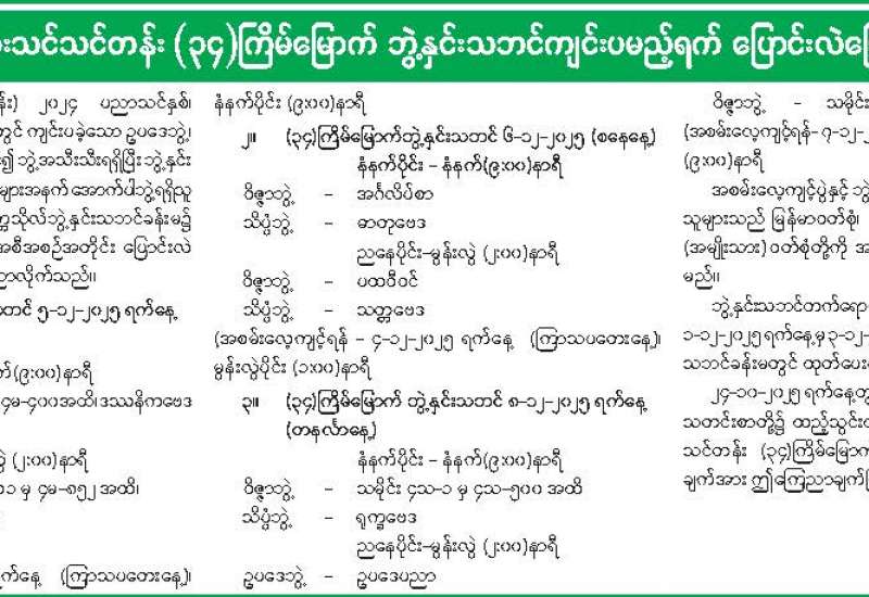 ပါတီစုံဒီမိုကရေစီအထွေထွေရွေးကောက်ပွဲ အပိုင်း (၁) ကျင်းပမည့်ရက်မှာ တစ်ရက်ထက်တစ်ရက် ပိုမိုနီးကပ်လာပြီဖြစ်သည်။ ရွေးကောက်ပွဲ အပိုင်း (၁)၊ အပိုင်း (၂) နှင့် အပိုင်း (၃) တို့ကို ရက်သတ္တပတ် နှစ်ပတ်စီခြား၍ ကျင်းပသွားမည်ဖြစ်ရာ လာမည့်နှစ်ဇန်နဝါရီလမကုန်မီ သုံးပိုင်းလုံးပြီးစီးနေမည်ဖြစ်သည်။ “ဤသည်မှာ ပါတီစုံဒီမိုကရေစီအထွေထွေရွေးကောက်ပွဲ လုပ်ငန်းစဉ်များအောင်မြင်ပြီး ပြည်သူလူထုတစ်ရပ်လုံးလိုလားတောင့်တသည့် ပါတီစုံဒီမိုကရေစီစနစ်ကို အောင်မြင်စွာ လျှောက်လှမ်းနိုင်ရေးပြည်သူလူထု၏ ပူးပေါင်းပါဝင်မှုဖြင့် အကောင်အထည်ဖော်ဆောင်ရွက်ရေး” ဟူသော ဦးတည်ချက်နှင့်အညီ ဆောင်ရွက်နေခြင်းဖြစ်ရာ ပြည်သူလူထုပူးပေါင်းဆောင်ရွက်မှုအားမှာ လွန်စွာအရေးကြီးသည်။