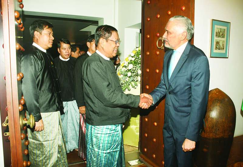 နိုင်ငံခြားရေးဝန်ကြီးဌာန ပြည်ထောင်စုဝန်ကြီး ဦးသန်းဆွေသည် မြန်မာနိုင်ငံဆိုင်ရာ အိန္ဒိယသံအမတ်ကြီး H.E. Mr. Abhay Thakur အား ယနေ့နံနက် ၈ နာရီခွဲတွင် ရန်ကုန်မြို့ရှိ ပန်းဝါဧည့်ရိပ်သာ၌ လက်ခံတွေ့ဆုံသည်။
