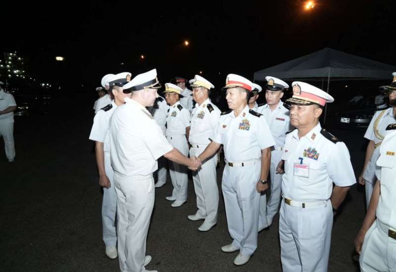 ရုရှားရေတပ် Pacific Fleet မှ ဖရီဂိတ်စစ်ရေယာဉ် Marshal Shaposhnikov ၊ ကော်ဗက်စစ် ရေယာဉ် Gremyashchiy နှင့်ထောက်ပံ့ရေးရေယာဉ် Boris Butoma တို့သည် မြန်မာနိုင်ငံသို့ တတိယအကြိမ် မြန်မာ-ရုရှားနှစ်နိုင်ငံရေကြောင်းလုံခြုံရေးဆိုင်ရာ လေ့ကျင့်ခန်းဆောင်ရွက်ရန်နှင့် ချစ်ကြည်ရေးခရီးလည်ပတ်ရန် ယနေ့ညနေပိုင်းတွင် ရန်ကုန်မြို့၊ သီလဝါဆိပ်ကမ်းသို့ ရောက်ရှိလာရာ တပ်မတော်(ရေ)မှ အရာရှိကြီးများ၊ အရာရှိ၊ စစ်သည်များ၊ မြန်မာနိုင်ငံသို့ ချစ်ကြည်ရေးခရီး ရောက်ရှိနေသည့် ရုရှားရေတပ်မှ ဒုတိယရေတပ်ဦးစီးချုပ် ဒုတိယဗိုလ်ချုပ်ကြီး Aleksei Anatolievich Kiiashko ၊ မြန်မာနိုင်ငံဆိုင်ရာ ရုရှားစစ်သံမှူးနှင့် တာဝန်ရှိသူများက ကြိုဆိုနှုတ်ဆက်ကြသည်။
