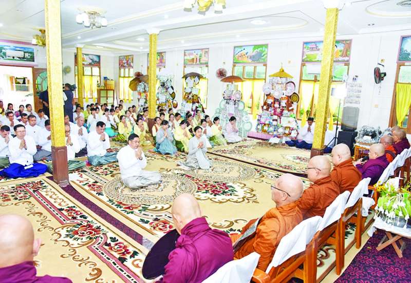 ၂၀၂၅ ခုနှစ်၊ မာရဝိဇယဗုဒ္ဓ ရုပ်ပွားတော်မြတ်ကြီး တန်ဆောင်တိုင်ပွဲတော် မသိုးရွှေကြာသင်္ကန်း ရက်လုပ်ပူဇော်ပွဲ ဖွင့်ပွဲအခမ်းအနားကို မာရဝိဇယဗုဒ္ဓဥယျာဉ် ရေပန်းရင်ပြင်တော်၌ကျင်းပရာ ပြည်ထောင်စုသမ္မတမြန်မာနိုင်ငံတော် ယာယီသမ္မတ နိုင်ငံတော်လုံခြုံရေးနှင့်အေးချမ်းသာယာရေးကော်မရှင်ဥက္ကဋ္ဌ ဗိုလ်ချုပ်မှူးကြီး မင်းအောင်လှိုင်နှင့် ဇနီး ဒေါ်ကြူကြူလှတို့ တက်ရောက်ကြည်ညိုကြသည်။