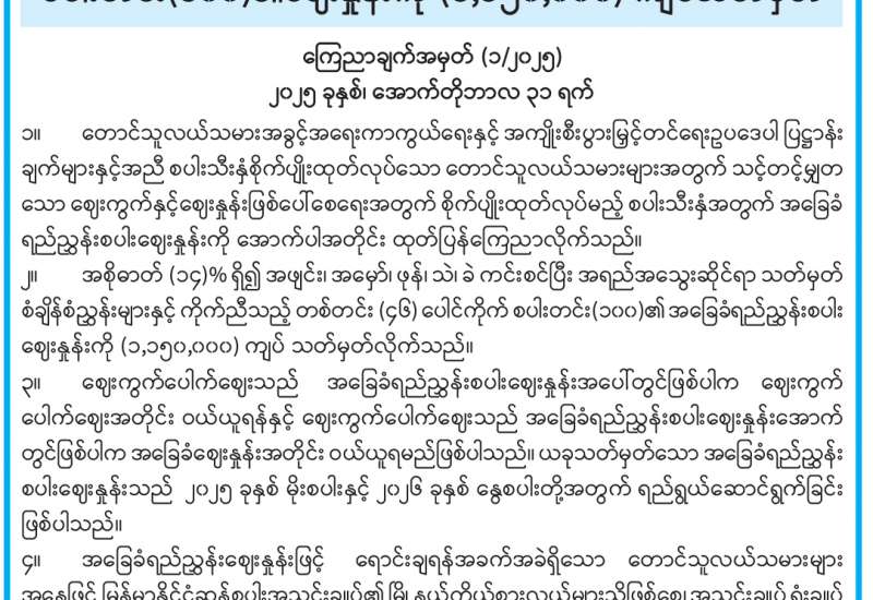 အခြေခံရည်ညွှန်းစပါးဈေးနှုန်း ထုတ်ပြန်ကြေညာချက်