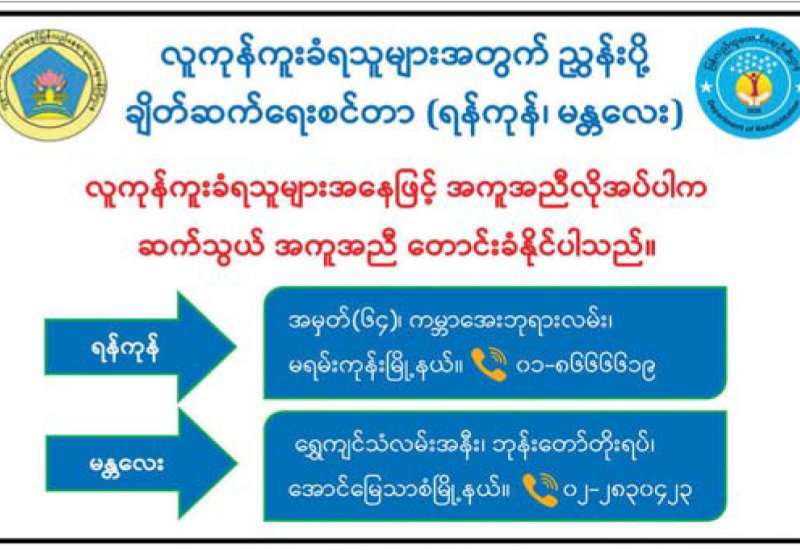 လူကုန်ကူးခံရသူများအတွက် ညွှန်းပို့ချိတ်ဆက်ရေးစင်တာ(ရန်ကုန်၊ မန္တလေး)တို့သို့ ဆက်သွယ်အကူအညီတောင်းခံနိုင်