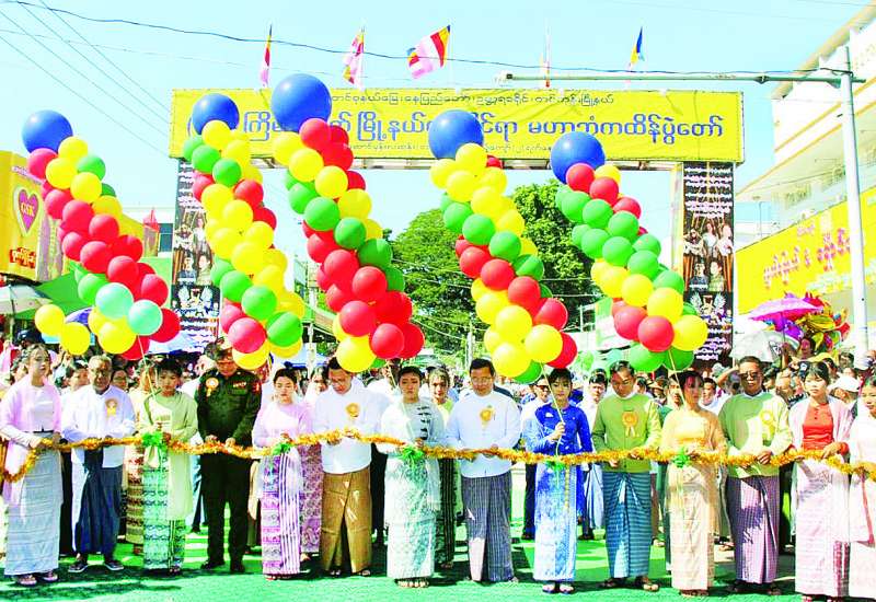 (၅၅)ကြိမ်မြောက် တပ်ကုန်းမြို့နယ်လုံးဆိုင်ရာ မဟာဘုံကထိန်ပွဲတော်ဖွင့်ပွဲအခမ်းအနားကို ယနေ့နံနက်ပိုင်းက နေပြည်တော်ကောင်စီနယ်မြေတပ်ကုန်းမြို့ ဗိုလ်မင်းရောင်ရပ်ကွက်ရှိ သာသနာ့ဗိမာန်အဝင်လမ်းထိပ်၌ကျင်းပရာ ပြန်ကြားရေးဝန်ကြီးဌာန ပြည်ထောင်စုဝန်ကြီး ဦးမောင်မောင်အုန်း၊ နေပြည်တော်ကောင်စီဝင် ဦးဇေယျာလင်း၊ ဗုဒ္ဓသာသနာပြုဗိမာန်ဂေါပကအဖွဲ့၊ ကထိန်ကျင်းပရေးဦးစီးကော်မတီနှင့် မြို့မိမြို့ဖများ၊ ဌာနဆိုင်ရာတာဝန်ရှိသူများ၊ ကျောင်းသား ကျောင်းသူများနှင့် ဖိတ်ကြားထားသည့် ဧည့်သည်တော်များ တက်ရောက်ကြသည်။