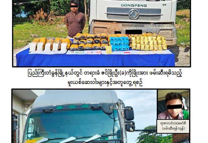 မူးယစ်ဆေးဝါးတားဆီးနှိမ်နင်းရေးရဲတပ်ဖွဲ့မှ တပ်ဖွဲ့ဝင်များပါဝင်သော ပူးပေါင်းအဖွဲ့သည် အောက်တိုဘာလ ၂၃ ရက်နေ့ ညနေ ၄ နာရီခွဲအချိန် သတင်းအရ ပင်လောင်းမြို့နယ်၊ လိန်းလီ ကျေးရွာအနီးတွင် ရှိုင်းဗိုလ် (ခ) ငမော့မောင်းနှင်လာသော DONGFENG မော်တော်ယာဉ်ပေါ်မှ ဘိန်းဆီခဲ ၇၄ ကီလို၊ စိတ်ပြောင်းဆေးဝါးများဖြစ်သည့် HAPPY WATER ၉ ကီလို၊ အက်တက်စီဆေးပြား ၁,၀၀၀ ပြား၊ ကက်တမင်း ၁၁ ဒသမ ၂ ကီလို၊ စိတ်ကြွရူးသွပ်ဆေးပြား ၁ ဒသမ ၁၄ သိန်းတို့အား ဖမ်းဆီးရမိခဲ့ကြောင်း၊ သတင်းကွင်းဆက်အရ အောက်တိုဘာလ ၂၄ ရက်နေ့ မွန်းလွဲ ၂ နာရီခွဲအချိန် ပြည်ကြီးတံခွန်မြို့နယ်၊ (ည)ရပ်ကွက်၊ ၅၅ x ၅၆ လမ်းကြားနှင့် ၁၄၁ x ၁၄၂ လမ်းကြား တွင် ဇင်ဖြိုးဦး(ခ)ကိုဖြိုးအား NISSAN ၁၂ ဘီး မော်တော်ယာဉ်ပေါ်မှ ဘိန်းဖြူ ၆ ဒသမ ၁၇ ကီလို၊ စိတ်ပြောင်းဆေးဝါးများဖြစ်သည့် HAPPY WATER ၇၇၅ ဂရမ်တို့နှင့်အတူ ဖမ်းဆီးရမိခဲ့သဖြင့် စုစုပေါင်းဘိန်းဖြူ ၆ ဒသမ ၁၇ ကီလို (၎င်းဒေသတန်ဖိုးငွေကျပ် ၁,၅၄၂ ဒသမ ၅ သိန်း)၊ ဘိန်းဆီခဲ ၇၄ ကီလို (၎င်းဒေသတန်ဖိုးငွေကျပ် သိန်း ၁,၄၈၀)၊ စိတ်ပြောင်းဆေးဝါးများဖြစ်သည့် HAPPY WATER ၉ ဒသမ ၇၇၅ ကီလို (၎င်းဒေသတန်ဖိုး ငွေကျပ်သိန်း ၆၃၃၀)၊ အက်တက်စီဆေးပြား ၁,၀၀၀ ပြား (၎င်းဒေသတန်ဖိုးငွေကျပ်သိန်း ၄၅၀)၊ ကက်တမင်း ၁၁ ဒသမ ၂ ကီလို (၎င်းဒေသ တန်ဖိုးငွေကျပ်သိန်း ၁,၁၂၀)၊ စိတ်ကြွရူးသွပ်ဆေးပြား ၁ ဒသမ ၁၄ သိန်း(၎င်းဒေသတန်ဖိုးငွေ ကျပ်သိန်း ၅၇၀)၊ (စုစုပေါင်းတန်ဖိုးငွေကျပ် ၁ ဒသမ ၁၄၉၂၅ ဘီလီယံ) ဖမ်းဆီးရမိခဲ့ပါကြောင်း၊