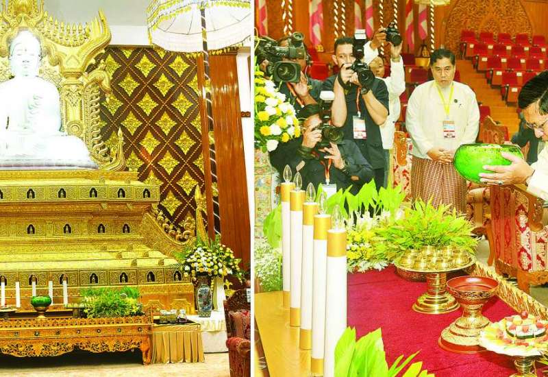 ကချင်ပြည်နယ် မြစ်ကြီးနားမြို့ မန်ခိန်ရပ်ကွက် ကွင်းအမှတ်-၄/ယောရင်ကွင်း ဦးပိုင်အမှတ် ၃၅ / ၂င ၊ ၃၅ /၂စ ရှိ ကချင်ပြည်နယ်တရားလွှတ်တော်အဆောက်အအုံသစ် ပန္နက်တော်တင် တွင်းတော်ဝန်း မင်္ဂလာအခမ်းအနားကို ယနေ့နံနက် ၉ နာရီက အဆိုပါအဆောက်အအုံ တည်ဆောက်မည့်နေရာ မင်္ဂလာမဏ္ဍပ်၌ကျင်းပရာ ပြည်ထောင်စုတရားသူကြီးချုပ် ဦးသာဌေး တက်ရောက်သည်။
