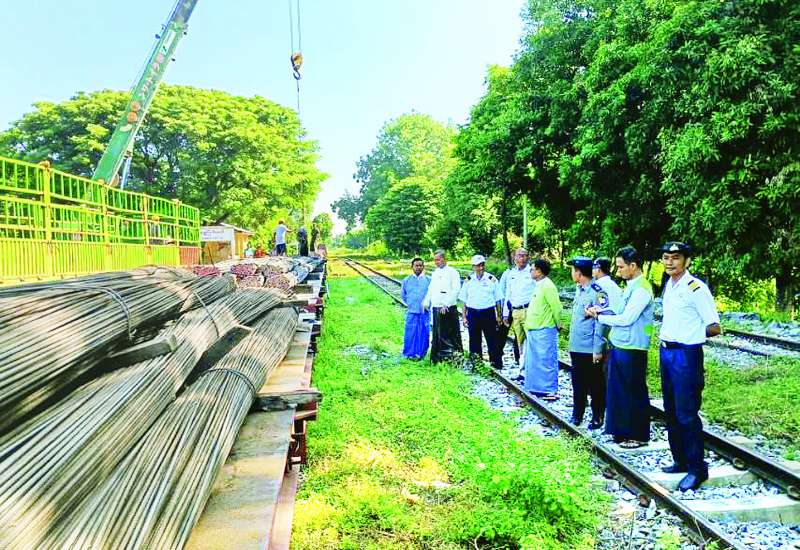 အမျိုးသားသဘာဝဘေးအန္တရာယ်ဆိုင်ရာစီမံခန့်ခွဲမှုကော်မတီအစီအစဉ်ဖြင့် ငလျင်ဘေးဒဏ်ပြန်လည်ထူထောင်ရေးနှင့်တည်ဆောက်ရေးလုပ်ငန်းများအတွက် လိုအပ်လျက်ရှိသော သံချောင်းလုံးများကို ရန်ကုန်မြို့မှ အထူးကုန်ရထားများဖြင့် ပို့ဆောင်ပေးလျက်ရှိသည်။