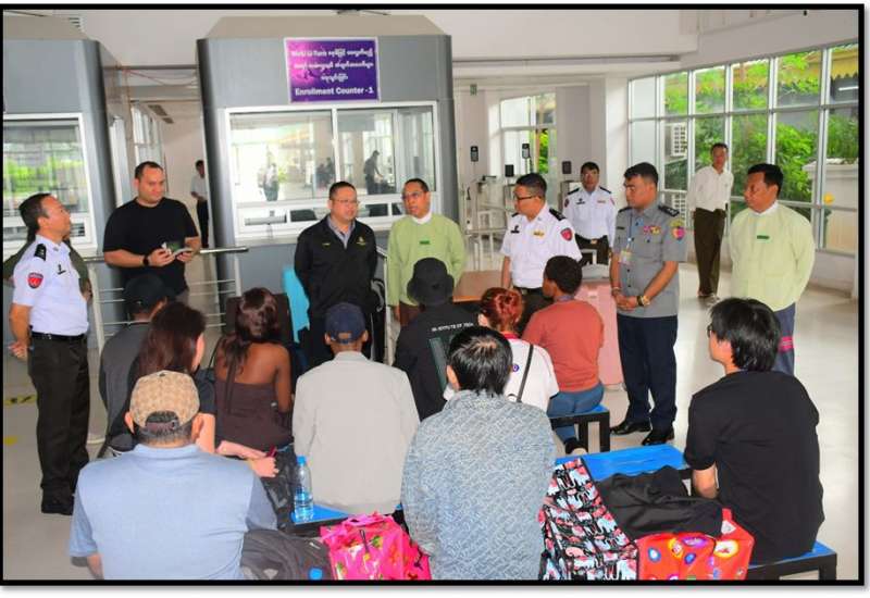 ထိုင်းနိုင်ငံအပါအဝင် အိမ်နီးချင်းနိုင်ငံအချို့ကို တစ်ဆင့်ခံဖြတ်သန်း၍ မြန်မာနိုင်ငံအတွင်းသို့ နယ်စပ်လမ်းကြောင်းများမှ တရားမဝင် ဝင်ရောက်လာပြီး ကရင်ပြည်နယ်၊ မြဝတီ-ရွှေကုက္ကို၊ မဲ့ထော်သလေး (KK Park) နှင့် ကျောက်ခတ်နယ်မြေများတွင် တရားမဝင် အွန်လိုင်းလောင်းကစားမှုများ၊ အွန်လိုင်းလိမ်လည်မှုများ၊ ဒုစရိုက်မှုများကျူးလွန်ခဲ့ကြသည့် တောင်အာဖရိကနိုင်ငံသားခြောက်ဦး၊ မလေးရှားနိုင်ငံသားသုံးဦးနှင့် ရုရှားနိုင်ငံသားတစ်ဦး၊ စုစုပေါင်းပြည်ပနိုင်ငံသား ၁၀ ဦးတို့အား မြန်မာ-ထိုင်းအမှတ်(၂)ချစ်ကြည်ရေးတံတားမှတစ်ဆင့် သက်ဆိုင်ရာနိုင်ငံများသို့ လူသားချင်းစာနာထောက်ထားမှုနှင့် နိုင်ငံအချင်းချင်း ချစ်ကြည်ရင်းနှီးမှုတို့ကိုရှေးရှု၍ ဥပဒေလုပ်ထုံး လုပ်နည်းများနှင့်အညီ ထပ်မံလွှဲပြောင်းပေးသည်။