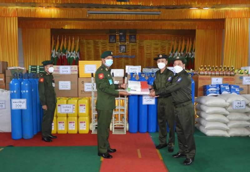 ကိုဗစ်-၁၉ ရောဂါ ဓာတ်ခွဲအတည်ပြု ပိုးတွေ့လူနာများနှင့် သီးသန့်စောင့် ကြည့်ရမည့်သူများကို ကုသရေးလုပ်ငန်းများ ဆောင်ရွက်ရာတွင် အောက်ဆီဂျင် လိုအပ်ချက်များကို တစ်ဖက် တစ်လမ်းမှ အထောက်အကူပြုစေရန်အတွက် တပ်မတော်နှင့် အလှူရှင်များက အောက်ဆီဂျင် အိုးများ၊ ရောဂါကာကွယ်ရေး အထောက် အကူပြုပစ္စည်းများနှင့် အာဟာရဖြည့် စားသောက် ဖွယ်ရာများကို တိုင်းဒေသကြီးနှင့် ပြည်နယ်အသီးသီးရှိ ပြည်သူ့ဆေးရုံများ၊ တပ်မတော် ဆေးရုံများ၊ ကျန်းမာရေးဌာနများ၊ ကိုဗစ်စင်တာများနှင့် လူမှုကူညီရေး အသင်းအဖွဲ့များသို့ ပေးပို့လှူဒါန်းလျက်ရှိသည်။