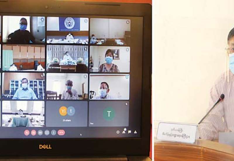 ဟိုတယ်နှင့်ခရီးသွားဆိုင်ရာ ဝန်ဆောင်မှုလုပ်ငန်းများကို ဘေးကင်းလုံခြုံသော ဝန်ဆောင်မှု လုပ်ငန်းများအဖြစ် အသိအမှတ်ပြုလက်မှတ်များ Online မှတစ်ဆင့် လျှောက်ထားအတည်ပြု ထုတ်ပေးနိုင်ရေးအတွက် “Enchanting Myanmar Health and Safety Protocol” Website မိတ်ဆက်ရှင်းလင်းခြင်း အခမ်းအနားကို ယနေ့ ညနေပိုင်းတွင် ဟိုတယ်နှင့် ခရီးသွားလာရေး ဝန်ကြီးဌာန၊ နီလာအစည်းအဝေးခန်းမ၌ Video Conferencing စနစ်ဖြင့် ကျင်းပပြုလုပ်သည်။