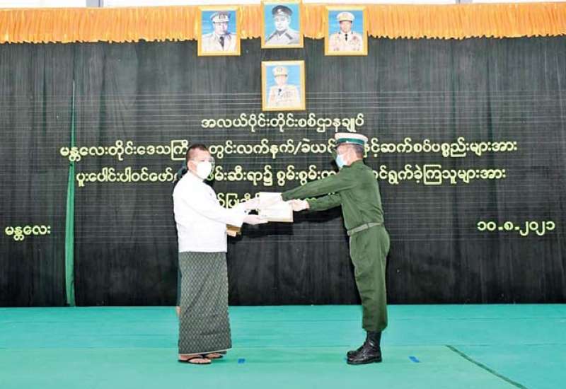 မန္တလေးတိုင်းဒေသကြီးအတွင်း လက်နက်/ခဲယမ်းများနှင့် ဆက်စပ်ပစ္စည်းများကို ပူးပေါင်းပါဝင် ဖော်ထုတ်ဖမ်းဆီးရာ၌ စွမ်းစွမ်းတမံဆောင်ရွက်ခဲ့ကြသူများအား ဂုဏ်ပြုချီးမြှင့်ခြင်းကို ယနေ့ နံနက်ပိုင်းတွင် အလယ်ပိုင်းတိုင်းစစ်ဌာနချုပ်၊ အားကစားခန်းမ၌ ပြုလုပ်ရာ မန္တလေးတိုင်း ဒေသကြီးဝန်ကြီးချုပ် ဦးမောင်ကို၊ တိုင်းမှူး ဗိုလ်ချုပ် ကိုကိုဦး၊ တိုင်းဒေသကြီးအစိုးရအဖွဲ့ဝင် ဝန်ကြီးများနှင့် ဌာနဆိုင်ရာတာဝန်ရှိသူများ တက်ရောက်ကြသည်။