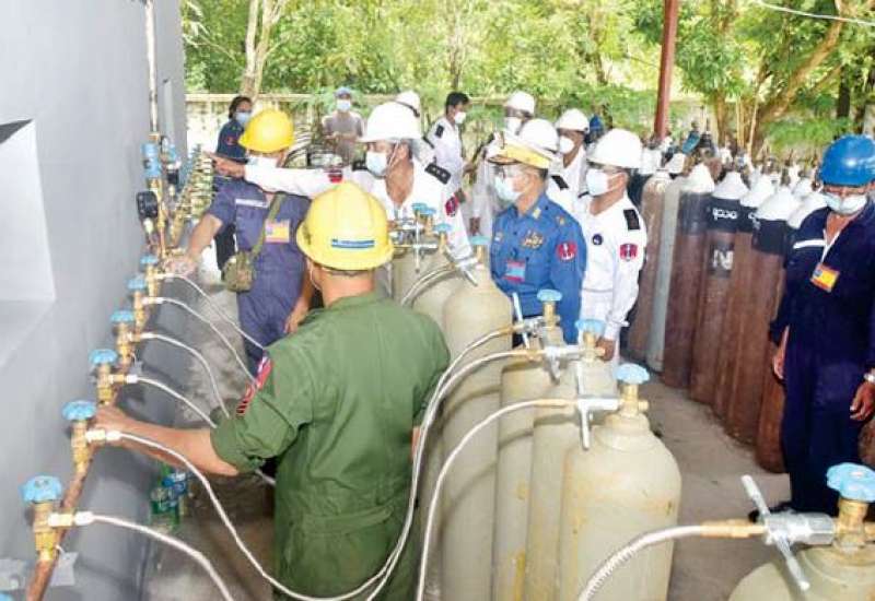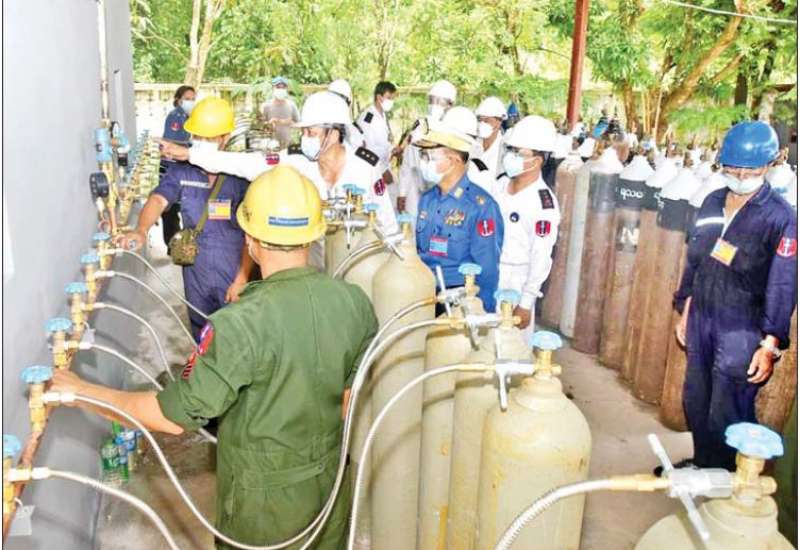 ကိုဗစ်-၁၉ ရောဂါ ကာကွယ်၊ ထိန်းချုပ်၊ ကုသရေးလုပ်ငန်းများအတွက် တပ်မတော်မှ လိုအပ်သော ကူညီထောက်ပံ့လှူဒါန်းမှုများအား စဉ်ဆက်မပြတ် ဆောင်ရွက်ပေးလျက်ရှိရာ အောက်ဆီဂျင်လိုအပ်ချက်များကို ပိုမိုဖြည့်တင်းပေးနိုင်ရန်အတွက် သန်လျင်တပ်နယ်ရှိ ရေတပ်သင်္ဘောကျင်းဌာနချုပ်တွင် KZO-100 အမျိုးအစား Oxygen Plant အား ဇူလိုင်လ ၂၁ ရက်နေ့မှစတင်၍ တပ်မတော်(ရေ)မှ အင်ဂျင်နီယာများဖြင့် တပ်ဆင်စမ်းသပ်မောင်းနှင်ခဲ့ရာ ယနေ့တွင် အောက်စီဂျင် ဓာတ်ငွေ့များ စတင်ထုတ်လုပ် ဖြည့်တင်းပေးနိုင်ခဲ့ပြီဖြစ်ကြောင်း သိရသည်။