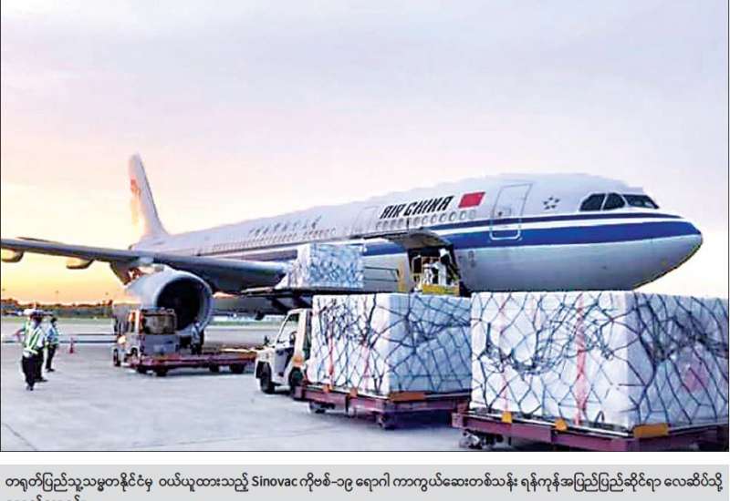 တရုတ်ပြည်သူ့သမ္မတနိုင်ငံမှ ဝယ်ယူထားသော Sinovac ကိုဗစ်-၁၉ ရောဂါ ကာကွယ်ဆေး ၂ သန်းအနက် ဒုတိယအသုတ်အဖြစ် တင်ဆောင်လာသော ကာကွယ် ဆေး ၁ သန်းသည် Air China လေယာဉ်ဖြင့် ယနေ့ညနေပိုင်းတွင် ရန်ကုန်အပြည်ပြည်ဆိုင်ရာ လေဆိပ်သို့ ရောက်ရှိလာသည်။