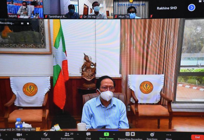 ကျန်းမာရေးနှင့် အားကစားဝန်ကြီးဌာန၊ ကိုဗစ်-၁၉ ရောဂါ ဖြစ်ပွားနေစဉ်ကာလအတွင်း သဘာဝ ဘေးအန္တရာယ်များကြောင့် ဖြစ်ပွားလာနိုင်သည့် ရောဂါများ ကြိုတင်ကာကွယ် ထိန်းချုပ်ရေးနှင့် ကိုဗစ်-၁၉ ကာကွယ်ဆေးဆက်လက်ထိုးနှံရေးလုပ်ငန်းညှိနှိုင်းအစည်းအဝေးကို ယနေ့ မွန်းလွဲပိုင်းတွင် ကျန်းမာရေးနှင့် အားကစားဝန်ကြီးဌာန၊ နေပြည်တော်၌ ဗွီဒီယိုကွန်ဖရင့် စနစ်ဖြင့် ကျင်းပသည်။