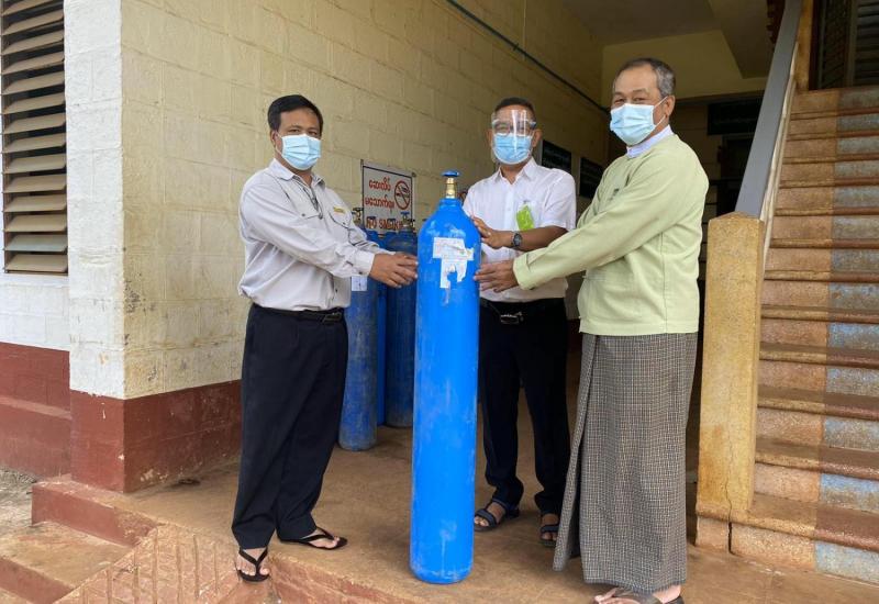 ကွမ်းလုံတံတားသစ် တည်ဆောက်ရေးစီမံကိန်းကို တာဝန်ယူဆောင်ရွက်လျက်ရှိသော တရုတ်ပြည်သူ့သမ္မတနိုင်ငံ ၊ Yunan Sunny Road & Bridge Co.,Ltd မှ ဆောက်လုပ်ရေးဝန်ကြီးဌာန ၊ တံတားဦးစီးဌာန သို့ ပေးအပ်လှူဒါန်း သည့် 40 Liter Oxygen အိုး အလုံး(၅၀) နှင့် Flow Meter (၁၅)ခု ကို ဇူလိုင် ၂၇ ရက်တွင် ချင်းရွှေဟော်နယ်စပ်ဂိတ်၌ လက်ခံရရှိခဲ့သည်။