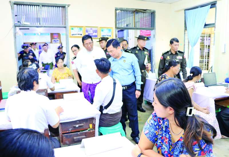 လူဝင်မှုကြီးကြပ်ရေးနှင့်ပြည်သူ့အင်အားဝန်ကြီးဌာန ပြည်ထောင်စုဝန်ကြီး ဦးမြင့်ကြိုင်သည် ရန်ကုန်တိုင်းဒေသကြီး လူမှုရေးရာဝန်ကြီးနှင့်အတူ ယနေ့ နံနက်ပိုင်းက ရန်ကုန်တိုင်းဒေသကြီး သာကေတမြို့နယ်သို့ သွားရောက်၍ လူဝင်မှုကြီးကြပ်ရေးနှင့်ပြည်သူ့အင်အားဝန်ကြီးဌာန သာကေတမြို့နယ် ဦးစီးမှူးရုံး၌ ဝန်ထမ်းများက အိမ်ထောင်စုလူဦးရေစာရင်းနှင့် နိုင်ငံသားစိစစ်ရေးကတ်ပြား ပျက်စီး/ ပျောက်ဆုံးသွားသည့် ဒေသခံပြည်သူများနှင့် နိုင်ငံသားစိစစ်ရေးကတ်ပြားမရရှိသေးသူများအား ပန်းခင်းစီမံချက်အဆင့် (၃) ဖြင့် ဆောင်ရွက်ပေးနေမှုကို ကြည့်ရှုအားပေးကာ လာရောက်ဆောင်ရွက်ကြသည့် ဒေသခံပြည်သူများကို ရင်းရင်းနှီးနှီး နှုတ်ဆက်၍ လိုအပ်သည်များကို တာဝန်ရှိသူများနှင့် ညှိနှိုင်းဆောင်ရွက်ပေးသည်။