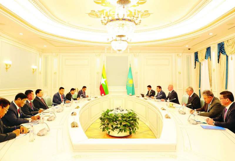 ပြည်ထောင်စုသမ္မတ မြန်မာနိုင်ငံတော် ယာယီသမ္မတ နိုင်ငံတော်လုံခြုံရေးနှင့် အေးချမ်းသာယာရေးကော်မရှင်ဥက္ကဋ္ဌ ဗိုလ်ချုပ်မှူးကြီး မင်းအောင်လှိုင်သည် ယနေ့မွန်းလွဲပိုင်းတွင် ကာဇက်စတန်သမ္မတနိုင်ငံ သမ္မတ H.E. Mr. Kassym-Jomart Tokayev နှင့် ကာဇက်စတန်သမ္မတနိုင်ငံ သမ္မတနန်းတော်၌ တွေ့ဆုံသည်။