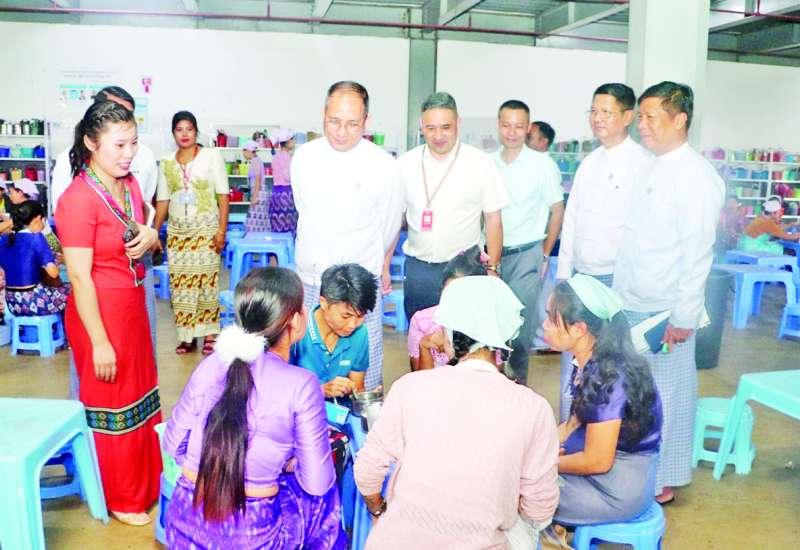 အလုပ်သမားဝန်ကြီးဌာန ပြည်ထောင်စုဝန်ကြီး ဦးအောင်ကျော်ဟိုးသည် တာဝန်ရှိသူများနှင့်အတူ ယနေ့နံနက်ပိုင်းတွင် ရန်ကုန်တိုင်းဒေသကြီး လှိုင်သာယာ(အနောက်ပိုင်း)မြို့နယ် မြစိမ်းရောင်စက်မှုဇုန်ရှိ Myanmar Rui Xin Shoes Co.,Ltd. ဖိနပ်ချုပ်စက်ရုံနှင့် Sincerece Season(Myanmar) Garment Co., Ltd. အထည်ချုပ်စက်ရုံတို့မှ အလုပ်ရှင်၊ အခြေခံအလုပ်သမားအဖွဲ့အစည်းဝင်များနှင့် တွေ့ဆုံသည်။