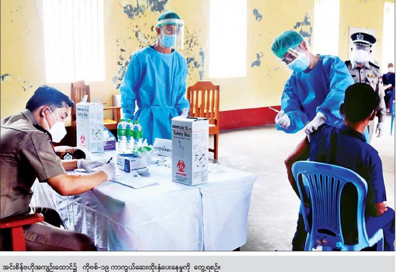 လတ်တလော ဖြစ်ပေါ်နေသော ကိုဗစ်-၁၉ ရောဂါ တတိယလှိုင်းကာလတွင် ရောဂါကာကွယ် ထိန်းချုပ်နိုင်ရေးနှင့် ပျံ့နှံ့မှုမရှိစေရေးအတွက်မြန်မာနိုင်ငံအနေဖြင့် ပြည်ပမှ ဝယ်ယူရောက်ရှိလာ သော ကာကွယ်ဆေးများ စတင်ထိုးနှံမှု ဆောင်ရွက်လျက်ရှိရာ ရန်ကုန်တိုင်းဒေသကြီး အင်းစိန် ဗဟိုအကျဉ်းထောင်အတွင်းရှိ အကျဉ်းသား/အချုပ်သား ၆၁၀ အား ယနေ့နံနက်ပိုင်းတွင် စတင် ထိုးနှံပေး ခဲ့ကြောင်း အင်းစိန်ဗဟိုအကျဉ်းထောင်မှ သိရသည်။