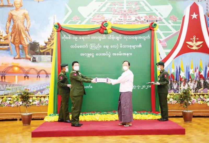 လက်ရှိအချိန်တွင် ကိုဗစ်-၁၉ ရောဂါ တတိယလှိုင်း ဖြစ်ပွားမှုမြင့်တက်လျက်ရှိပြီး ဓာတ်ခွဲအတည်ပြု ပိုးတွေ့ လူနာများနှင့် သီးသန့်စောင့်ကြည့်ရမည့်သူများကို ပြည်သူ့ဆေးရုံများ၊ တပ်မတော်ဆေးရုံများ၊ ကျန်းမာရေးဌာနများနှင့် ကိုဗစ်စင်တာများတွင် ကျန်းမာရေးစောင့်ရှောက်မှုလုပ်ငန်းများကို ကျန်းမာရေးဝန်ထမ်းများ၊ တပ်မတော်ဆေးဝန်ထမ်းတပ်ဖွဲ့ ဝင်များ၊ လူမှုရေးအသင်းများ ပူးပေါင်း၍ အင်တိုက်အားတိုက် ဆောင်ရွက်ပေးလျက်ရှိရာ ကိုဗစ်-၁၉ ရောဂါ ကာကွယ်၊ ထိန်းချုပ်၊ ကုသရေးအတွက် တပ်မတော်(ကြည်း၊ရေ၊လေ) မိသားစုများ၏ အလှူငွေ ပေးအပ်ပွဲအခမ်းအနားကို ယနေ့နံနက်ပိုင်းတွင် နေပြည်တော်ရှိ ဘုရင့်နောင်ရိပ်သာခန်းမ၌ ကျင်းပသည်။
