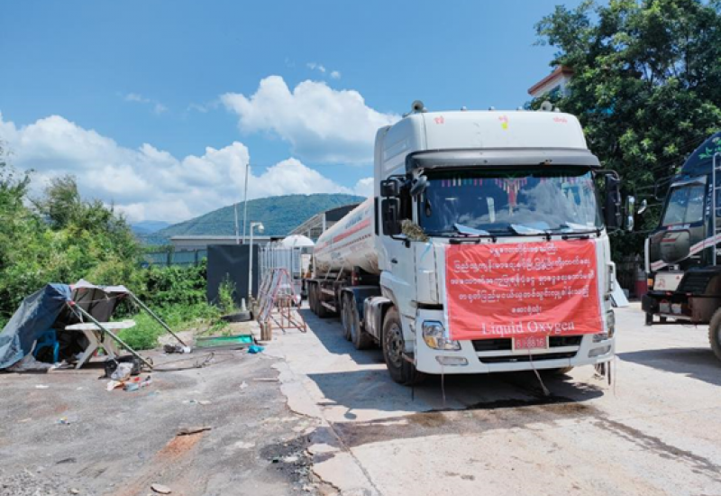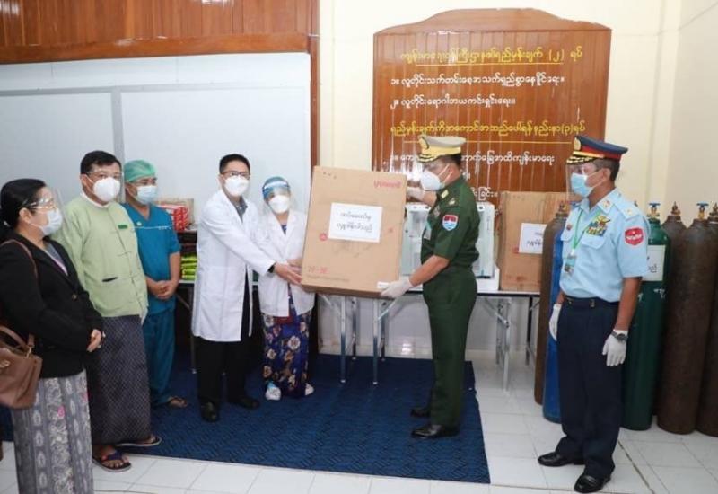 ကိုဗစ်-၁၉ရောဂါဓာတ်ခွဲအတည်ပြု ပိုးတွေ့ လူနာများ နှင့် သီးသန့်စောင့်ကြည့်ရမည့်သူများကို ကုသရေး လုပ်ငန်းများ ဆောင်ရွက်ရာတွင် အောက်ဆီဂျင် လိုအပ်ချက်များကို တစ်ဖက်တစ်လမ်းမှ အထောက် အကူပြုစေရန်အတွက် တပ်မတော်နှင့် အလှူရှင်များ က အောက်ဆီဂျင်အိုးများကို တိုင်းဒေသကြီးနှင့် ပြည်နယ်အသီးသီးရှိ ပြည်သူ့ဆေးရုံများ၊ တပ်မတော်ဆေးရုံများ၊ ကျန်းမာရေး ဌာနများနှင့် ကိုဗစ်စင်တာ များသို့ ပေးပို့လှူဒါန်းလျက်ရှိသည်။