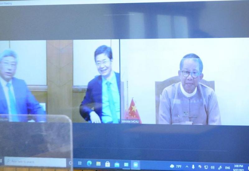 စိုက်ပျိုးရေး၊မွေးမြူရေးနှင့်ဆည်မြောင်းဝန်ကြီးဌာနပြည်ထောင်စုဝန်ကြီး ဦးတင်ထွဋ်ဦး သည် ယနေ့ညနေပိုင်းတွင် မြန်မာနိုင်ငံဆိုင်ရာ တရုတ်ပြည်သူ့သမ္မတနိုင်ငံ သံအမတ်ကြီး မစ္စတာချန်းဟိုင်ကို Online Virtual ဖြင့် တွေ့ဆုံ၍ နှစ်နိုင်ငံလယ်ယာကဏ္ဍကုန်သွယ်မှု တိုးမြှင့် ရေးဆိုင်ရာများကို ရင်းနှီးပွင့်လင်းစွာဆွေးနွေးကြသည်။