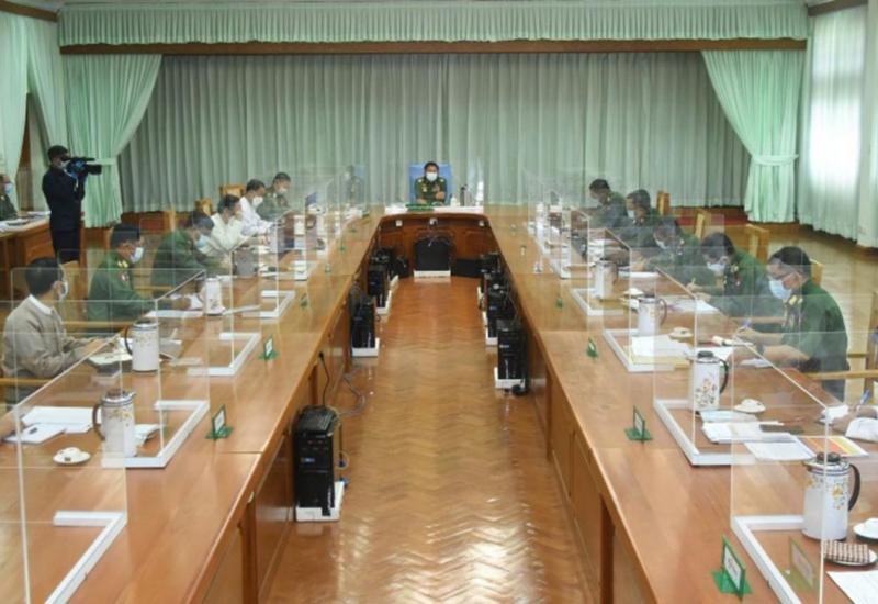 COVID-19 ရောဂါ ကာကွယ်၊ ထိန်းချုပ်၊ ကုသရေးဆိုင်ရာ ညှိနှိုင်းအစည်းအဝေးကို ယနေ့မွန်းလွဲပိုင်းတွင် နေပြည်တော်ရှိ ကာကွယ်ရေးဦးစီးချုပ်ရုံး(ကြည်း)၊ အစည်း အဝေးခန်းမ၌ ကျင်းပပြုလုပ်ရာ နိုင်ငံတော်စီမံအုပ်ချုပ်ရေးကောင်စီဥက္ကဋ္ဌ တပ်မတော် ကာကွယ်ရေးဦးစီးချုပ် ဗိုလ်ချုပ်မှူးကြီးမင်းအောင်လှိုင် တက်ရောက် အမှာစကား ပြောကြားသည်။