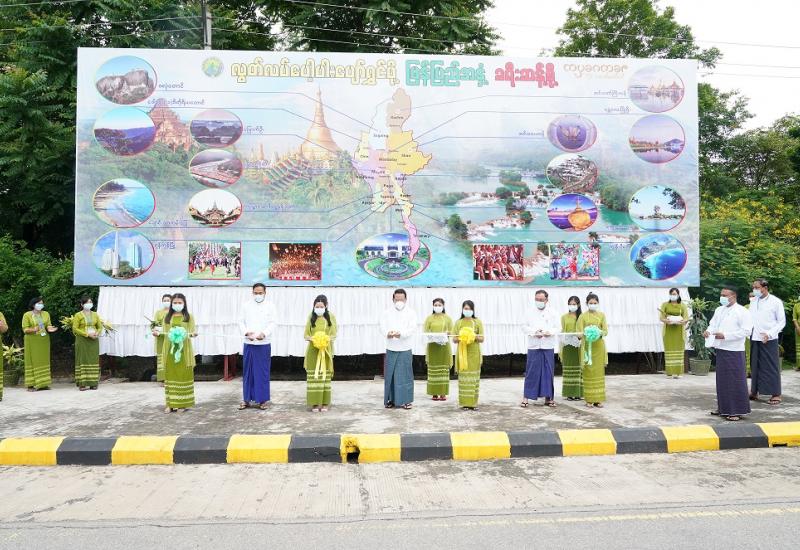 ယနေ့ အမျိုးသားခရီးသွားလုပ်ငန်း ဖွံ့ဖြိုးတိုးတက်ရေးဗဟိုကော်မတီ ပထမအကြိမ် အစည်းအဝေးကို ဂုဏ်ပြုကြိုဆိုခြင်း၊ ပြည်တွင်းခရီးသွားလုပ်ငန်း ပြန်လည်စတင်ခြင်း အထိမ်းအမှတ်နှင့် မြန်မာနိုင်ငံ ခရီးစဉ်ဒေသများ၏ ဆွဲဆောင်မှုများကို ပြည်သူများသိရှိပြီး လည်ပတ်နိုင်ရေး အသိပေး ဆောင်ရွက်သည့် အနေဖြင့် “လွတ်လပ်ပေါ့ပါးပျော်ရွှင်ဖို့ မြန်ပြည်အနှံ့ ခရီးဆန့်စို့” ခရီးသွားမြှင့်တင်ရေး Billboard ဖွင့်ပွဲအခမ်းအနားကို ယနေ့နံနက်ပိုင်းတွင် ဟိုတယ်နှင့်ခရီးသွားလာရေးဝန်ကြီးဌာန ဆိုင်းဘုတ်ရှေ့တွင် ကိုဗစ်-၁၉ စည်းမျဉ်းစည်းကမ်းနှင့်အညီ ကျင်းပသည်။