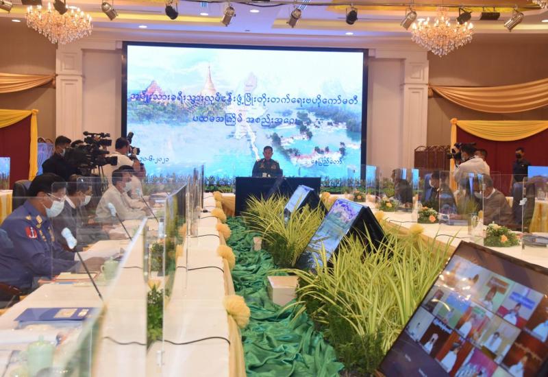 Coronavirus Disease 2019 (COVID-19) ထိန်းချုပ်ရေးနှင့် အရေးပေါ်တုံ့ပြန်ရေးကော်မတီ ပဉ္စမအကြိမ် လုပ်ငန်းညှိနှိုင်းအစည်းအဝေးကို ယနေ့ညနေပိုင်းတွင် နေပြည်တော်ရှိ နိုင်ငံတော် စီမံအုပ်ချုပ်ရေးကောင်စီ ဥက္ကဋ္ဌရုံး အစည်းအဝေးခန်းမ၌ကျင်းပရာ Coronavirus Disease 2019 (COVID-19) ထိန်းချုပ်ရေးနှင့် အရေးပေါ်တုံ့ပြန်ရေးကော်မတီဥက္ကဋ္ဌ ၊ နိုင်ငံတော် စီမံအုပ်ချုပ်ရေး ကောင်စီ ဒုတိယဥက္ကဋ္ဌ၊ ဒုတိယတပ်မတော်ကာကွယ်ရေးဦးစီးချုပ်၊ ကာကွယ်ရေးဦးစီးချုပ် (ကြည်း) ဒုတိယဗိုလ်ချုပ်မှူးကြီး စိုးဝင်း တက်ရောက်အမှာစကား ပြောကြားသည်။