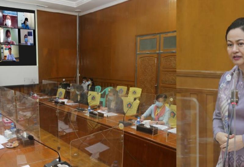 ရှေးဦးအရွယ်ကလေးသူငယ် ဖွံ့ဖြိုးရေးအခြေအနေ တိုင်းတာစစ်ဆေးမှုနှင့် ပြန်လည်ထူထောင်ရေး လုပ်ငန်း (Early Childhood Intervention- ECI) စီမံချက် (မူကြမ်း) ရှင်းလင်းတင်ပြခြင်း အစည်းအဝေးကို ယနေ့နံနက်ပိုင်းက လူမှုဝန်ထမ်း၊ ကယ်ဆယ်ရေးနှင့် ပြန်လည်နေရာချထား ရေးဝန်ကြီးဌာနရှိ ဝန်ကြီးရုံး EC အစည်းအဝေးခန်းမ၌ Virtual ဖြင့် ကျင်းပသည်။