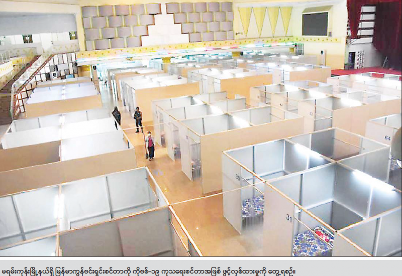 ရန်ကုန်တိုင်းဒေသကြီး စီမံအုပ်ချုပ်ရေးကောင်စီ၏ ကြီးကြပ်မှုဖြင့် ရန်ကုန်မြို့တော်စည်ပင်သာယာ ရေးကော်မတီက အကောင်အထည်ဖော်ဆောင်ရွက် ပြီးစီးခဲ့သည့် မရမ်းကုန်းမြို့နယ် မင်းဓမ္မလမ်းရှိ မြန်မာကွန်ဗင်းရှင်းစင်တာကို ကိုဗစ်-၁၉ ကုသရေး စင်တာဖွင့်လှစ်ခြင်းကို ယနေ့ နံနက် ၉ နာရီက ကျင်းပသည်။